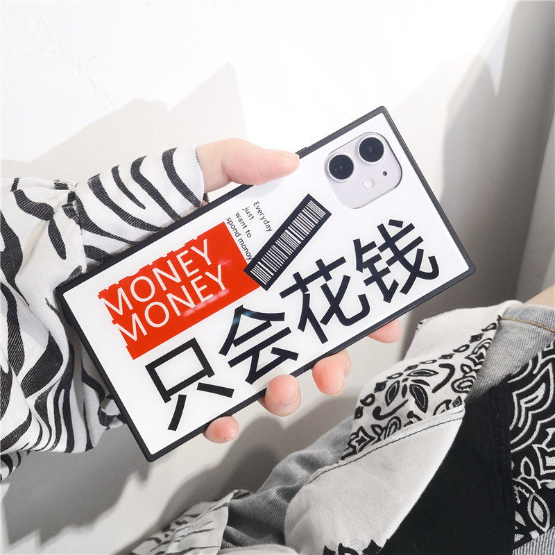 文字系列只会花钱搞钱 方形玻璃壳(iPhone12/11/Pro/Max/MiNi)