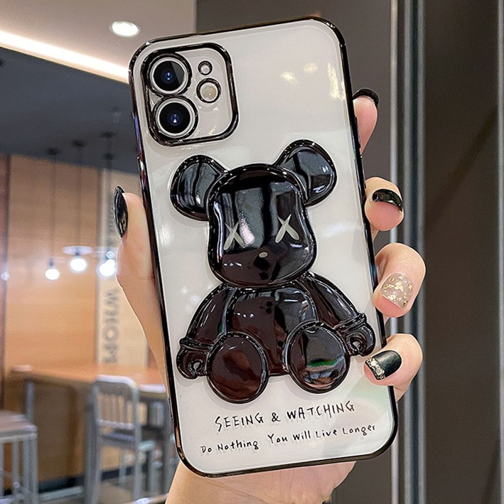 潮牌系列电镀钻石暴力熊 硅胶壳(iPhone15/14/13/12/11/Pro/Max)
