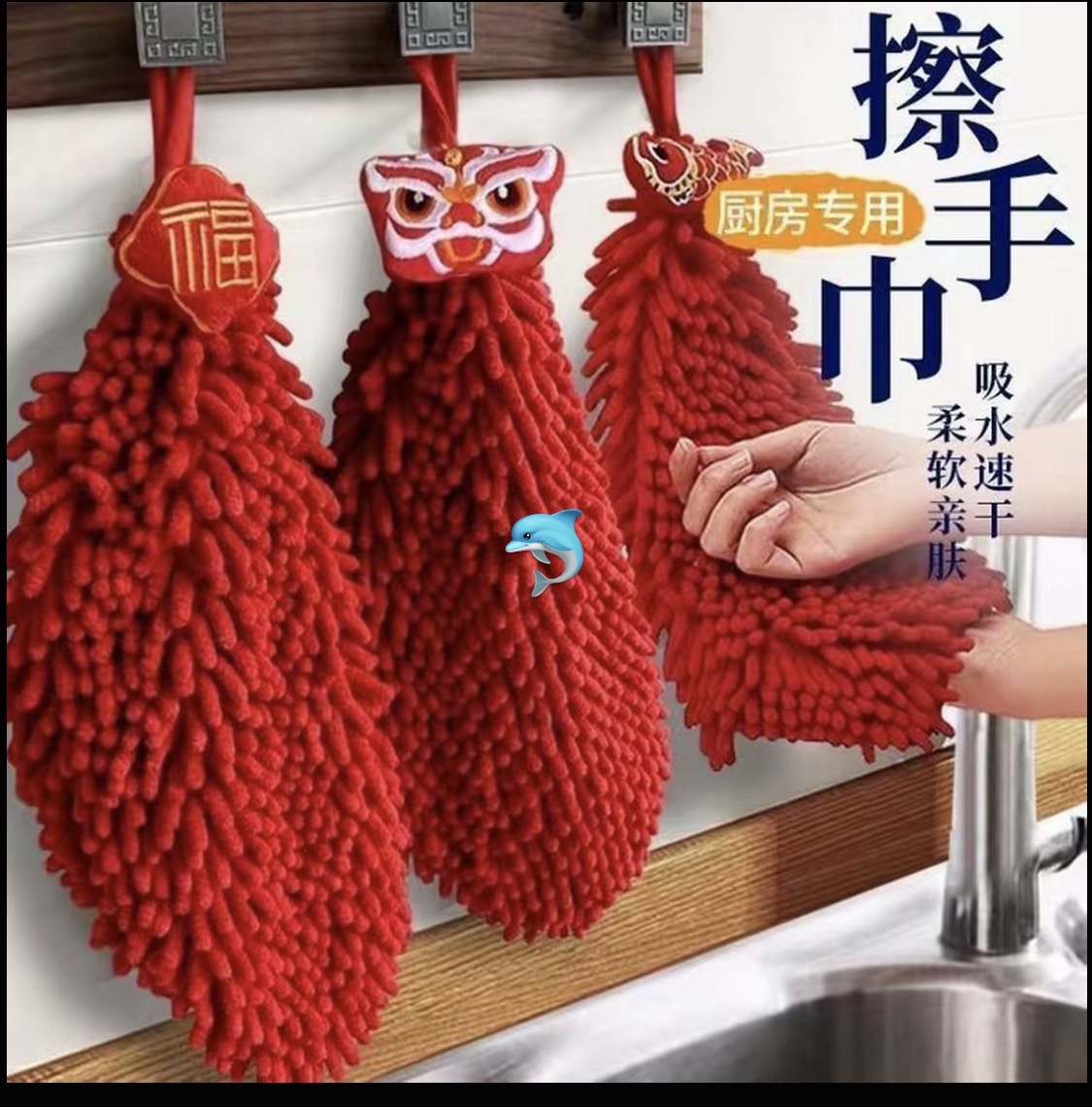 百货小铺【3个入】雪尼尔-挂式擦手巾