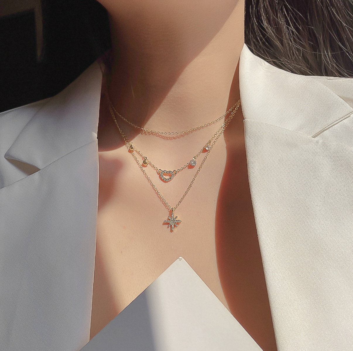 Soulcoo|锆石芒星爱心三层项链ins女时尚清新