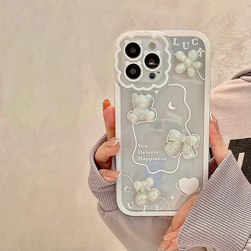 夏日立体轻奢蝴蝶结小熊 硅胶壳(iPhone13/12/11/Pro/Max/X/Xr/XsMax)