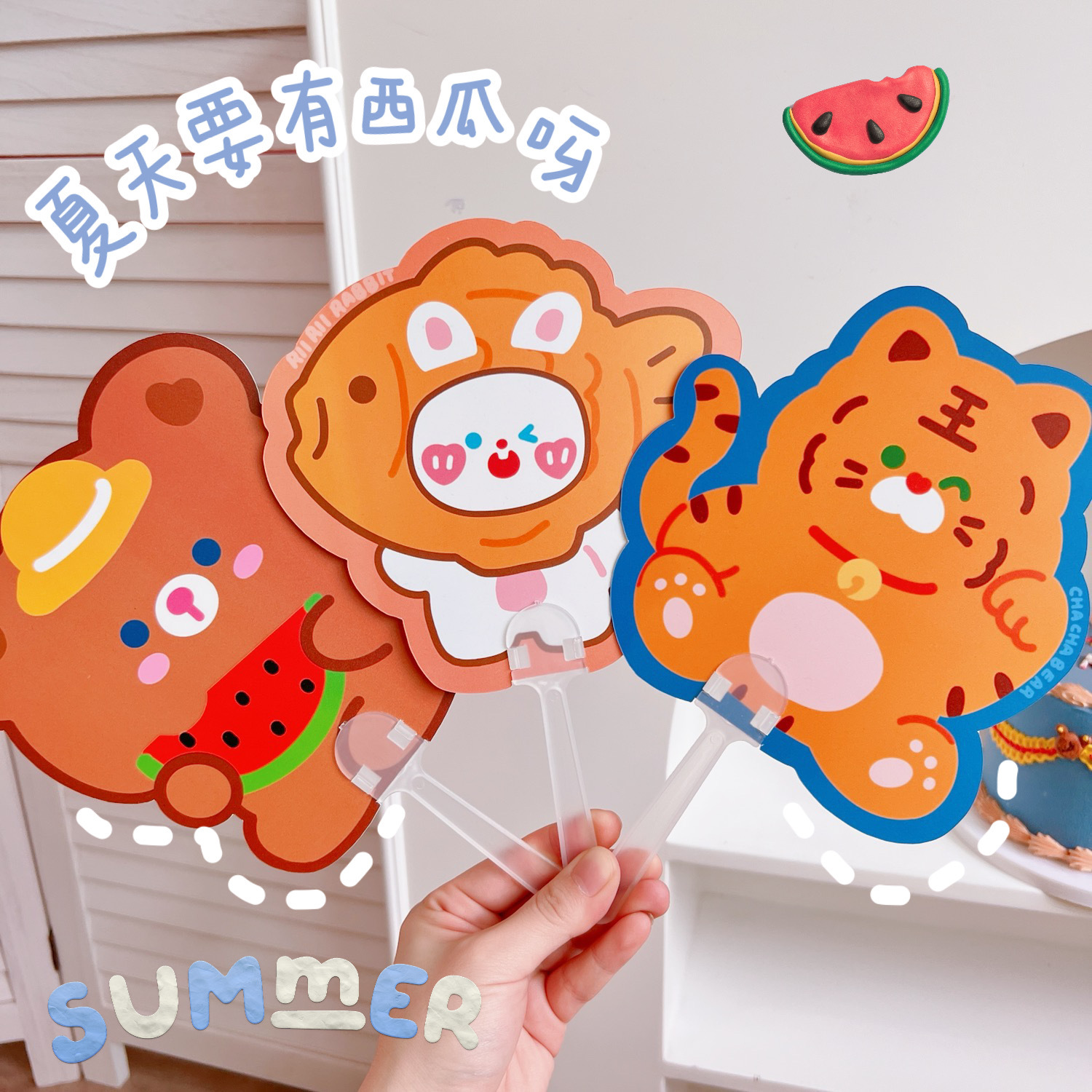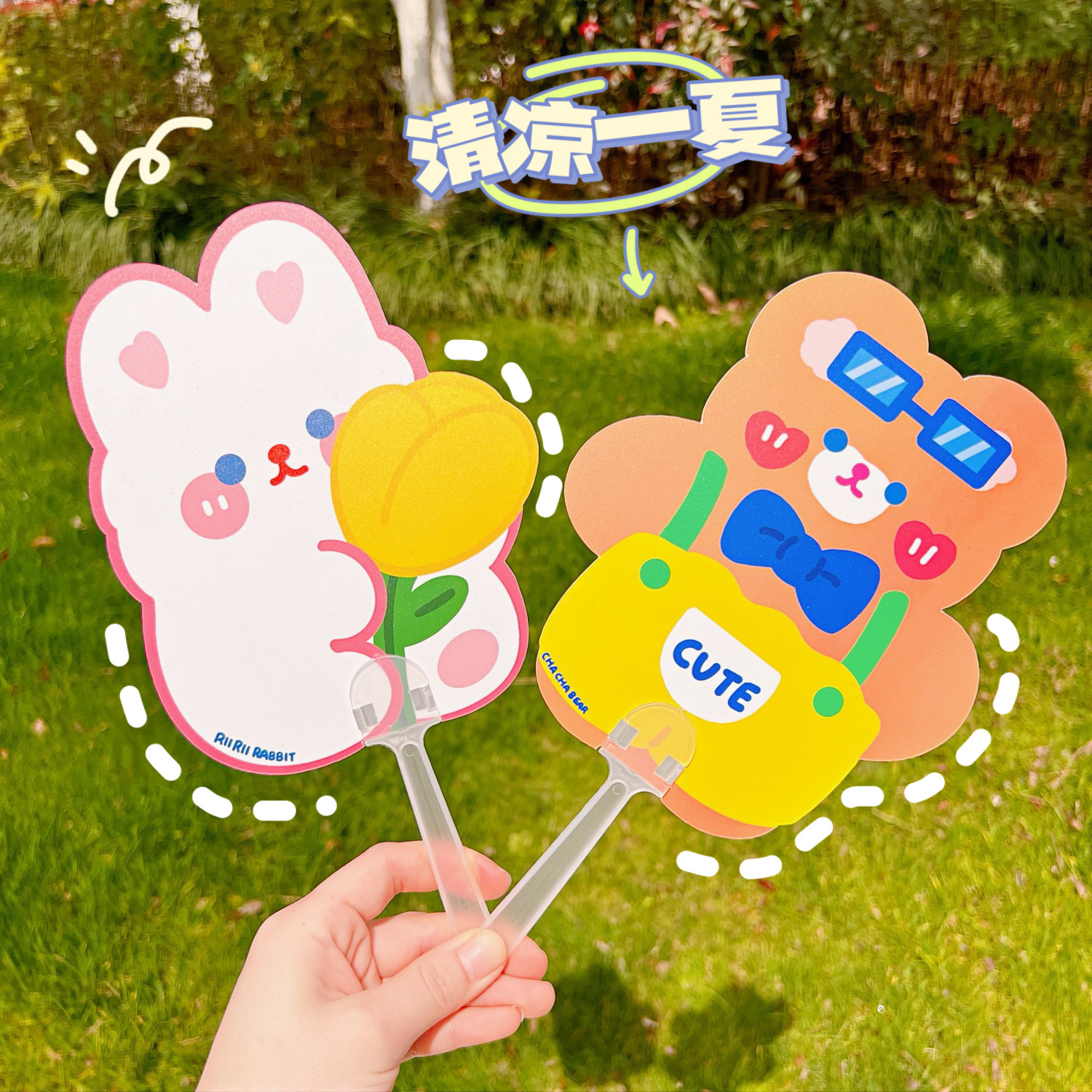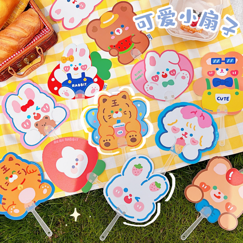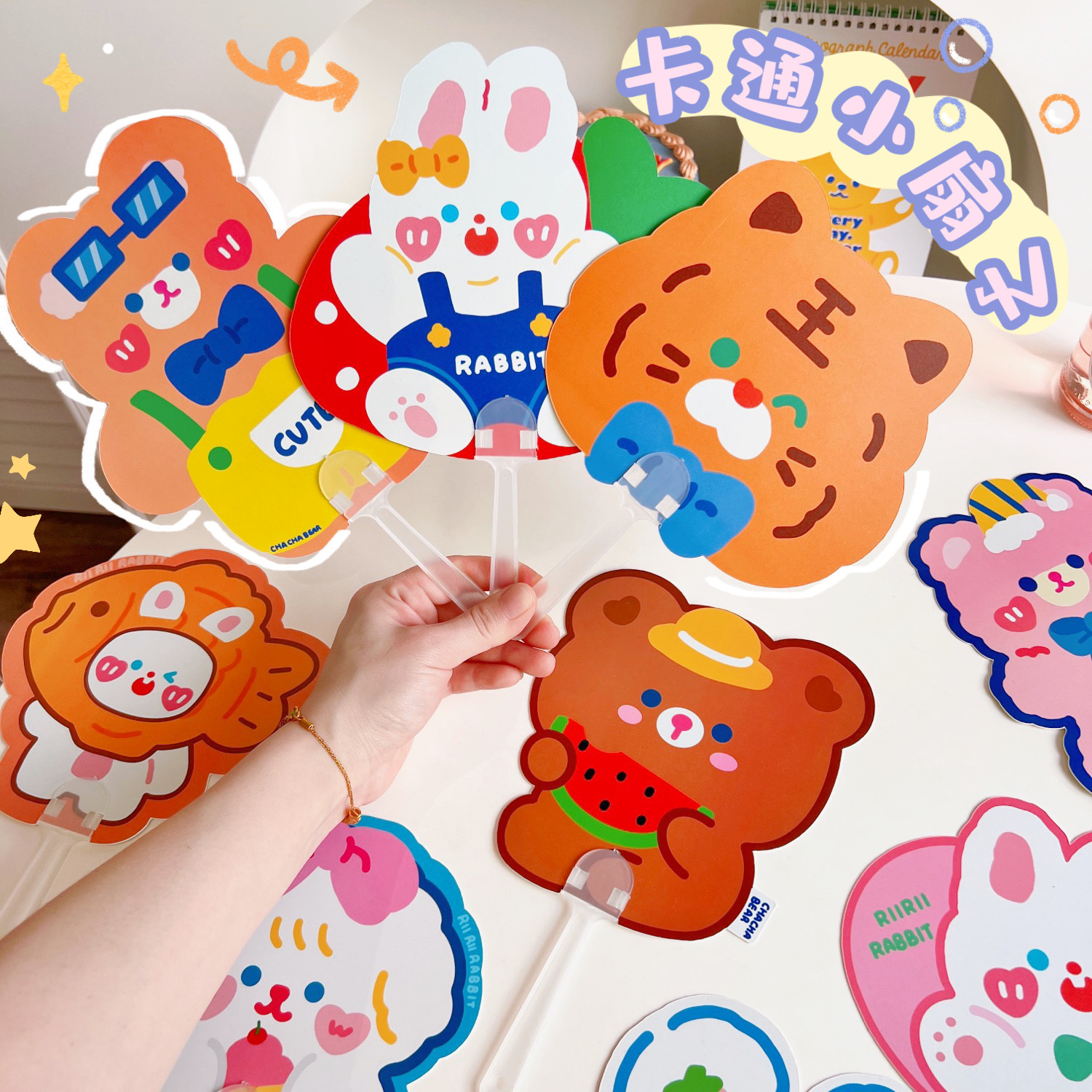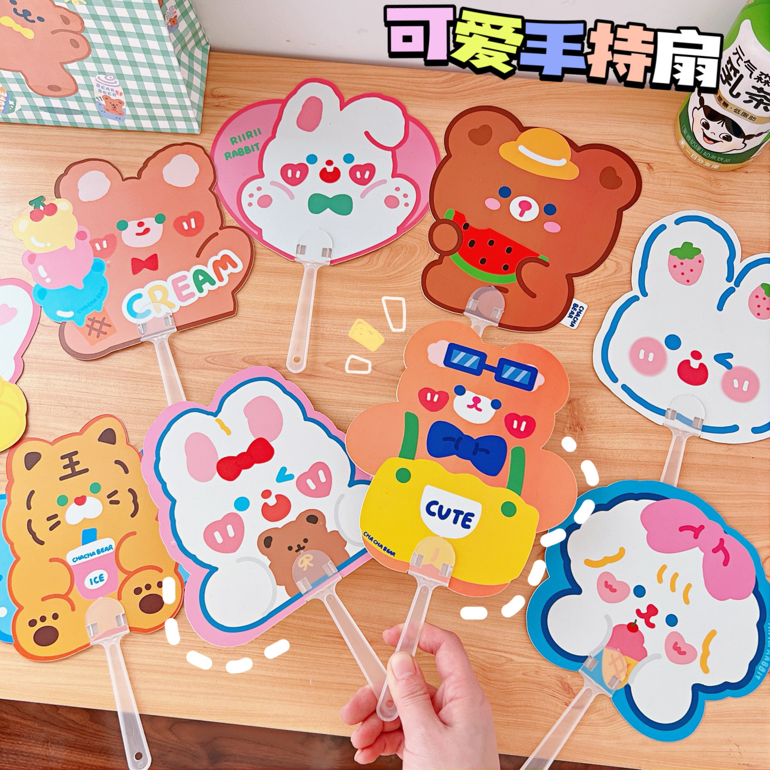 卡通可爱小熊小兔手柄扇子迷你便携随身扇 多款选