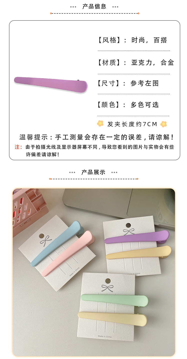 磨砂鸭嘴夹马卡龙色系化妆边夹刘海夹 多款选