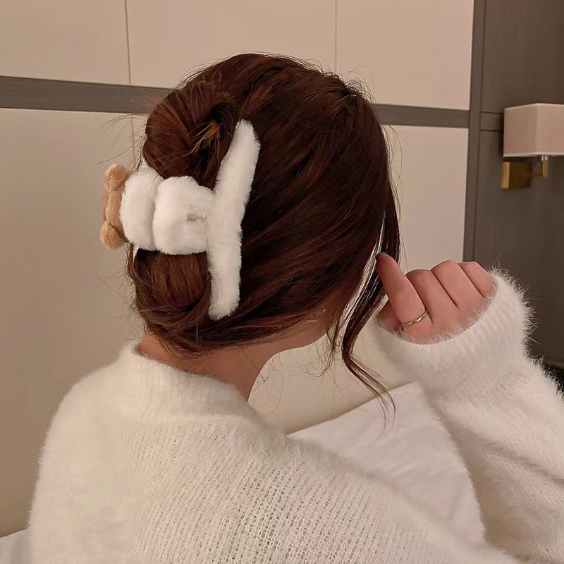 毛绒小熊发夹后脑勺抓夹鲨鱼夹
