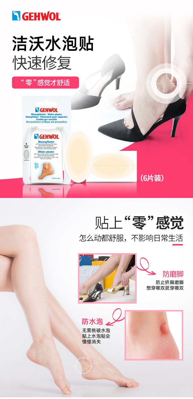 【德国🇩🇪百年品质, 6片装】Gehwol洁沃防磨脚凝胶水泡贴透明高跟鞋 隐形脚后跟贴防水疱贴6片装♛EllySpa♛