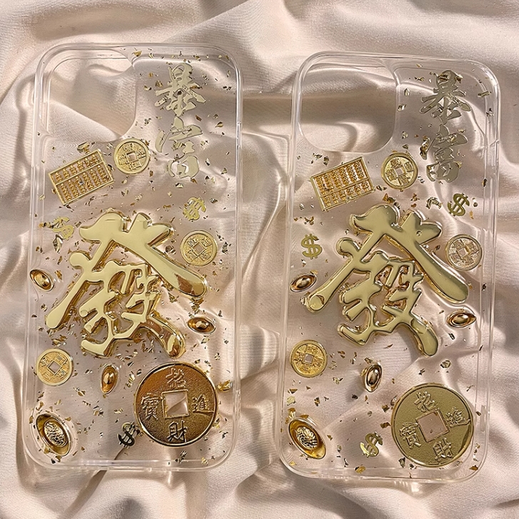 滴胶金箔暴富立体發 硅胶壳(iPhone15/14/13/12/11/Pro/Max)