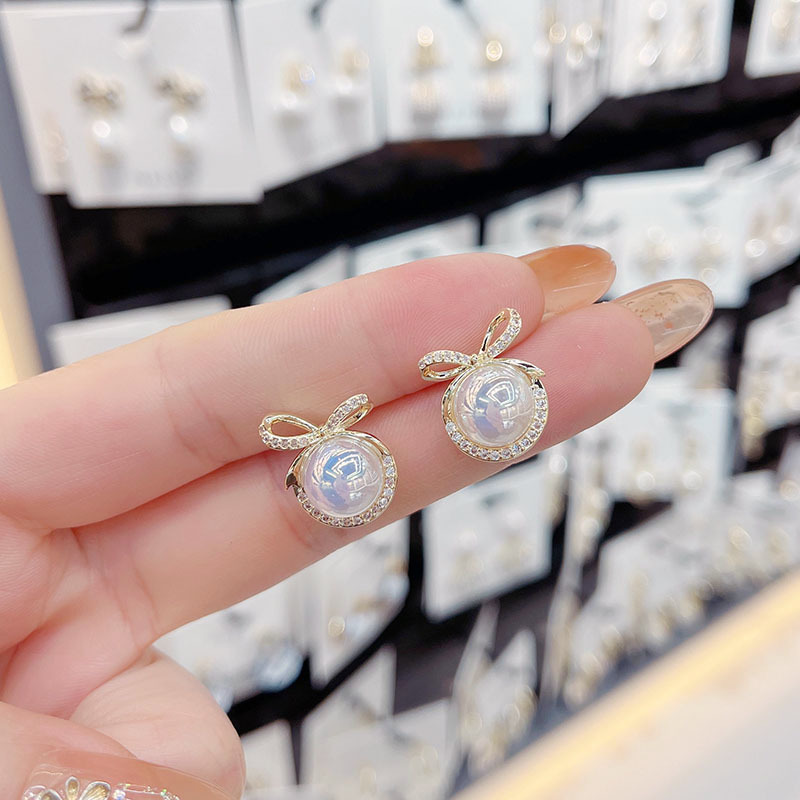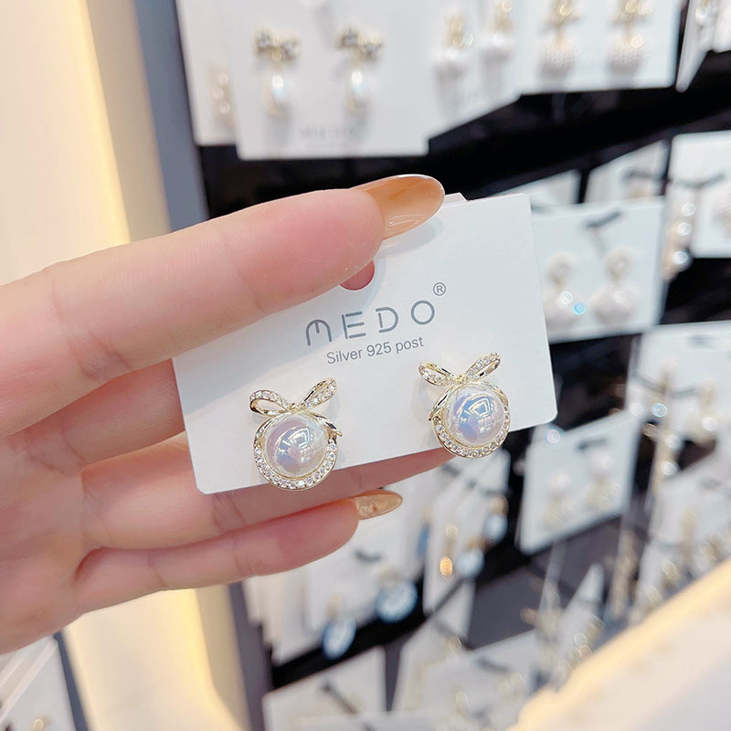 闪钻蝴蝶结人鱼姬珍珠耳钉 S925银针 一对