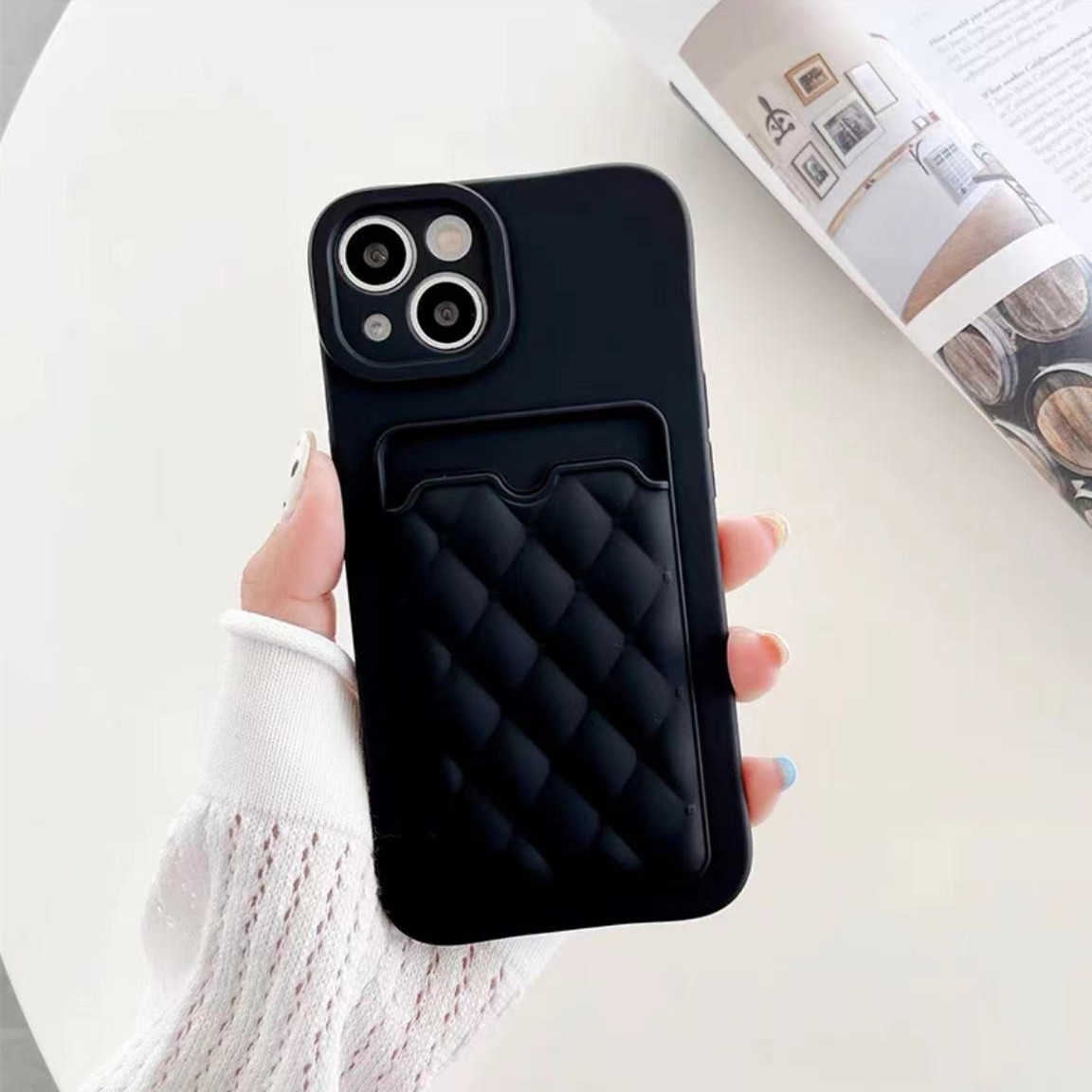 纯色菱格一体卡包 皮质壳(iPhone14/13/12/11/Pro/Max/Xr)