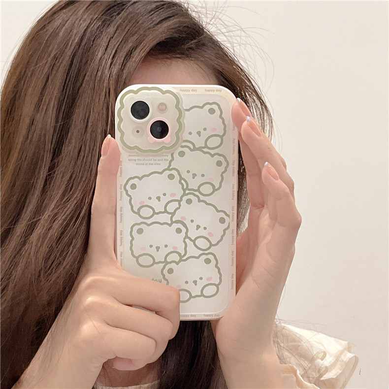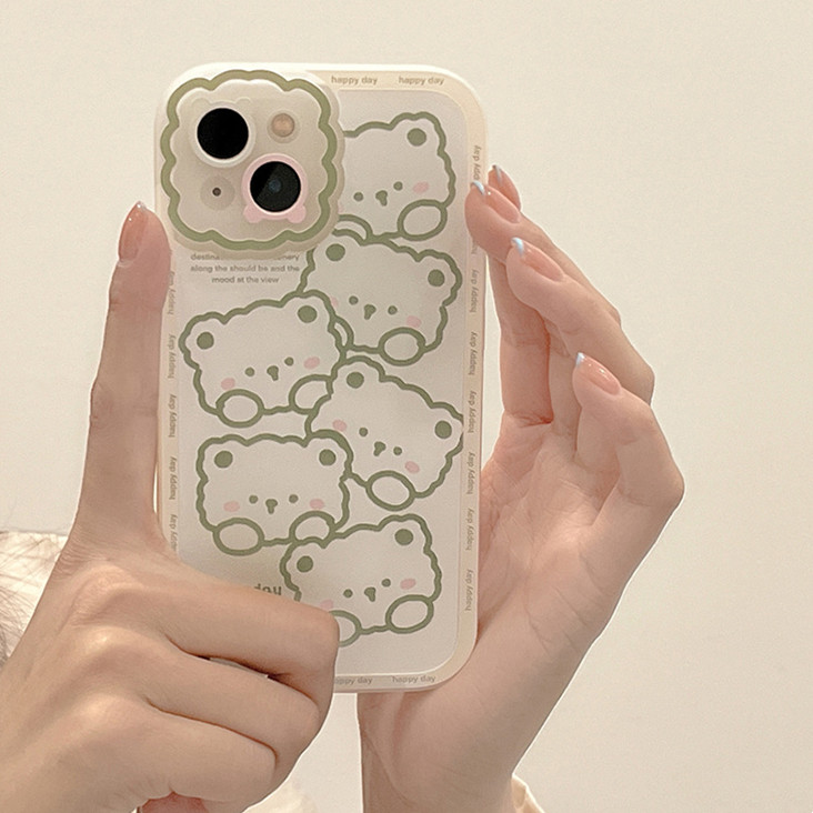 卡通绿色线条小熊 硅胶壳(iPhone13/12/11/Pro/Max/Xr)