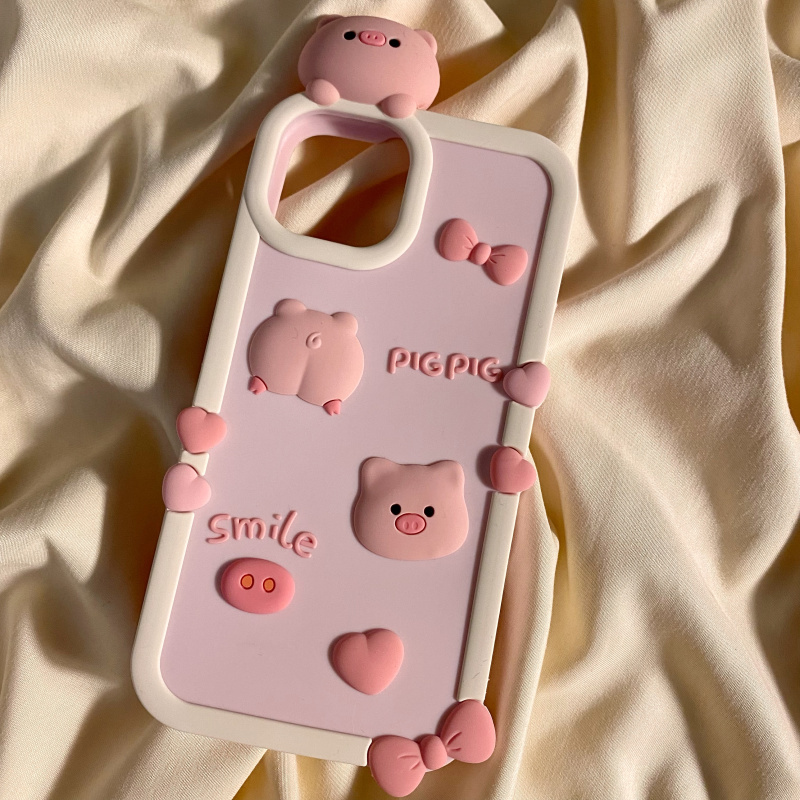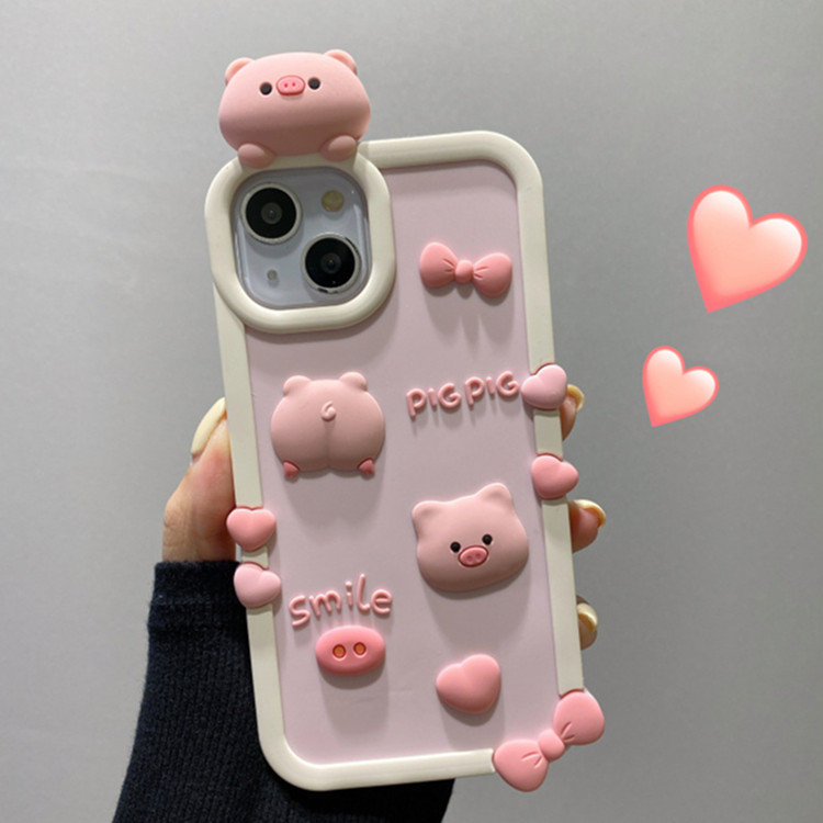 立体趴趴爱心粉猪 硅胶壳(iPhone14/13/12/11/Pro/Max/Xr)
