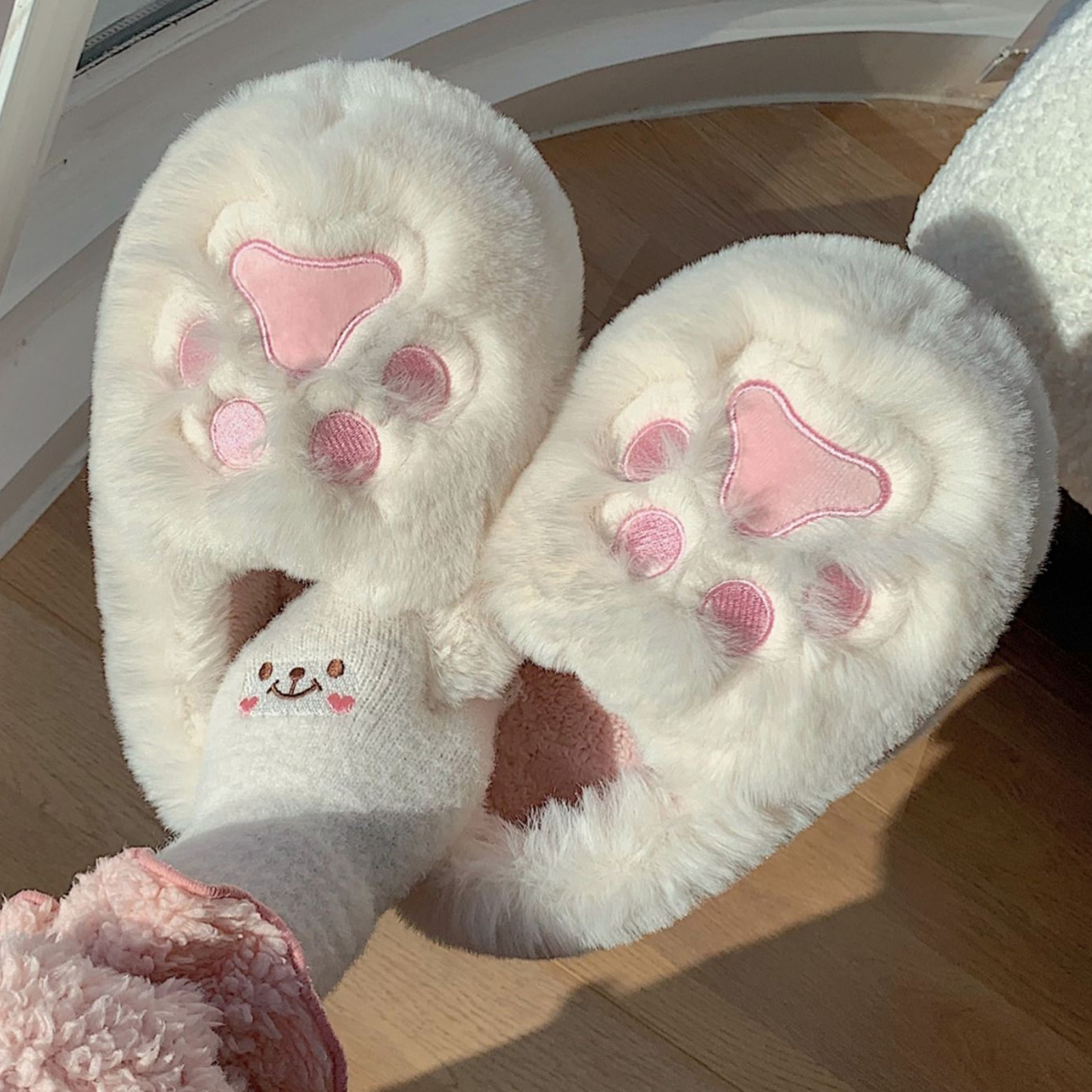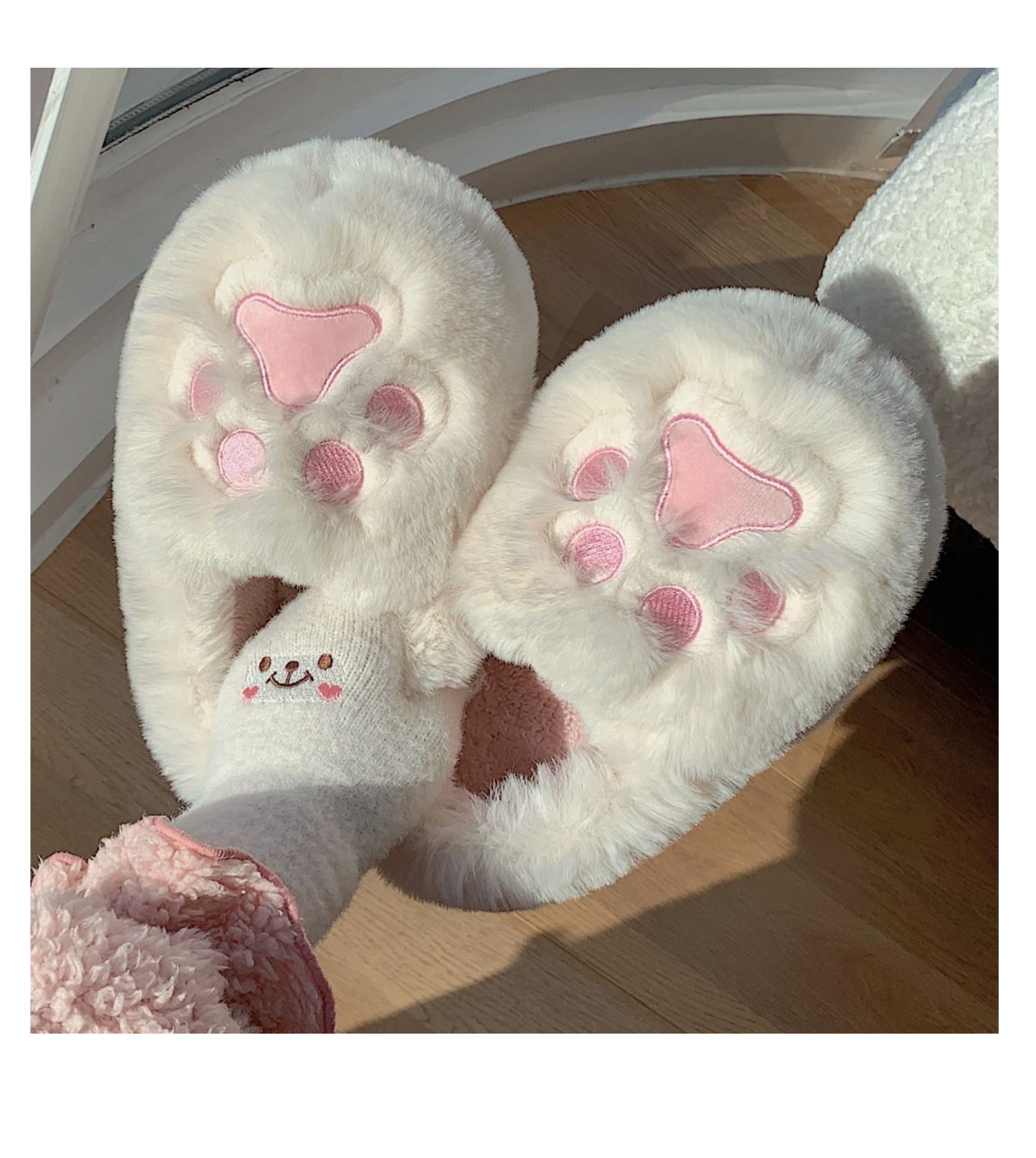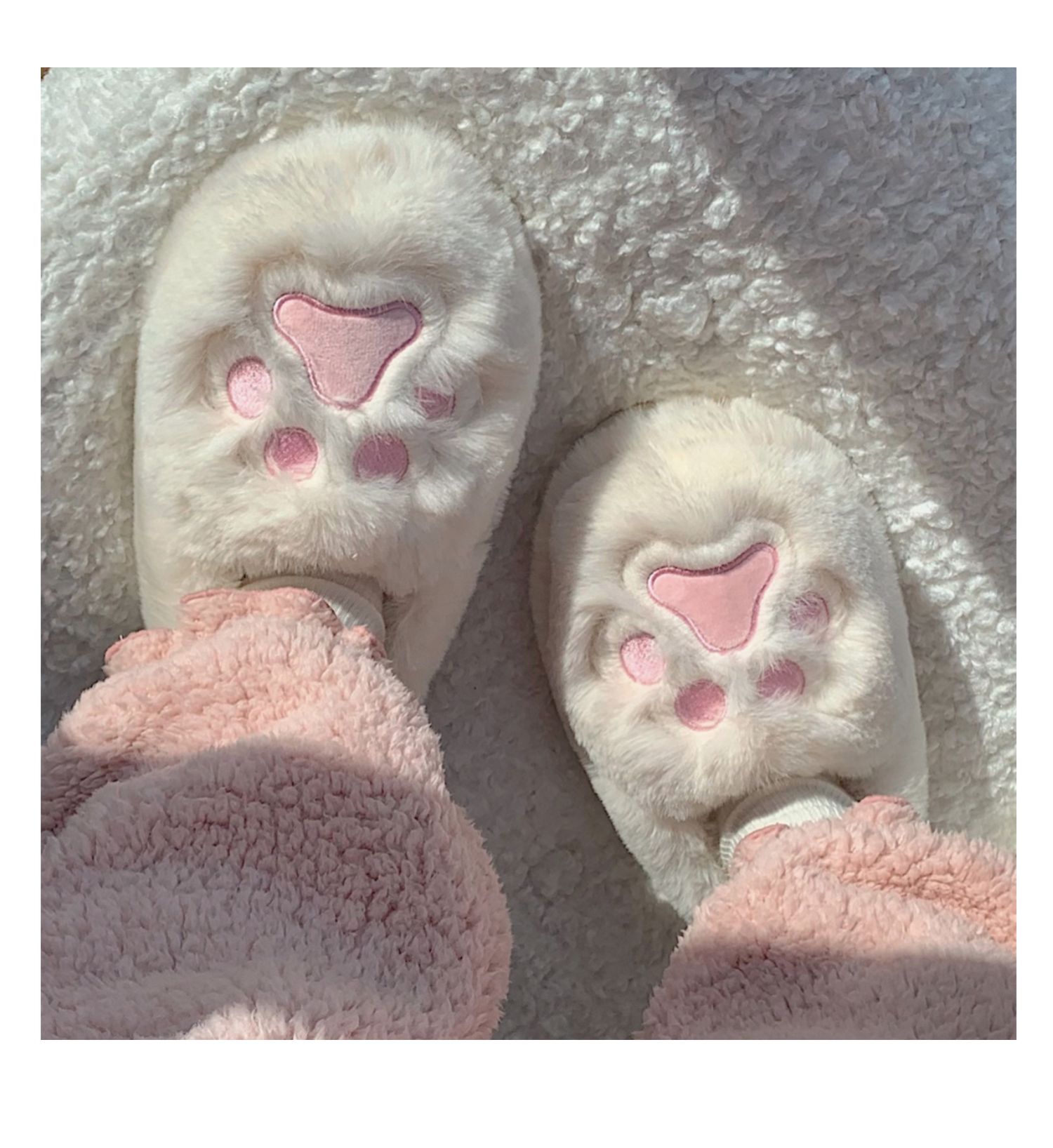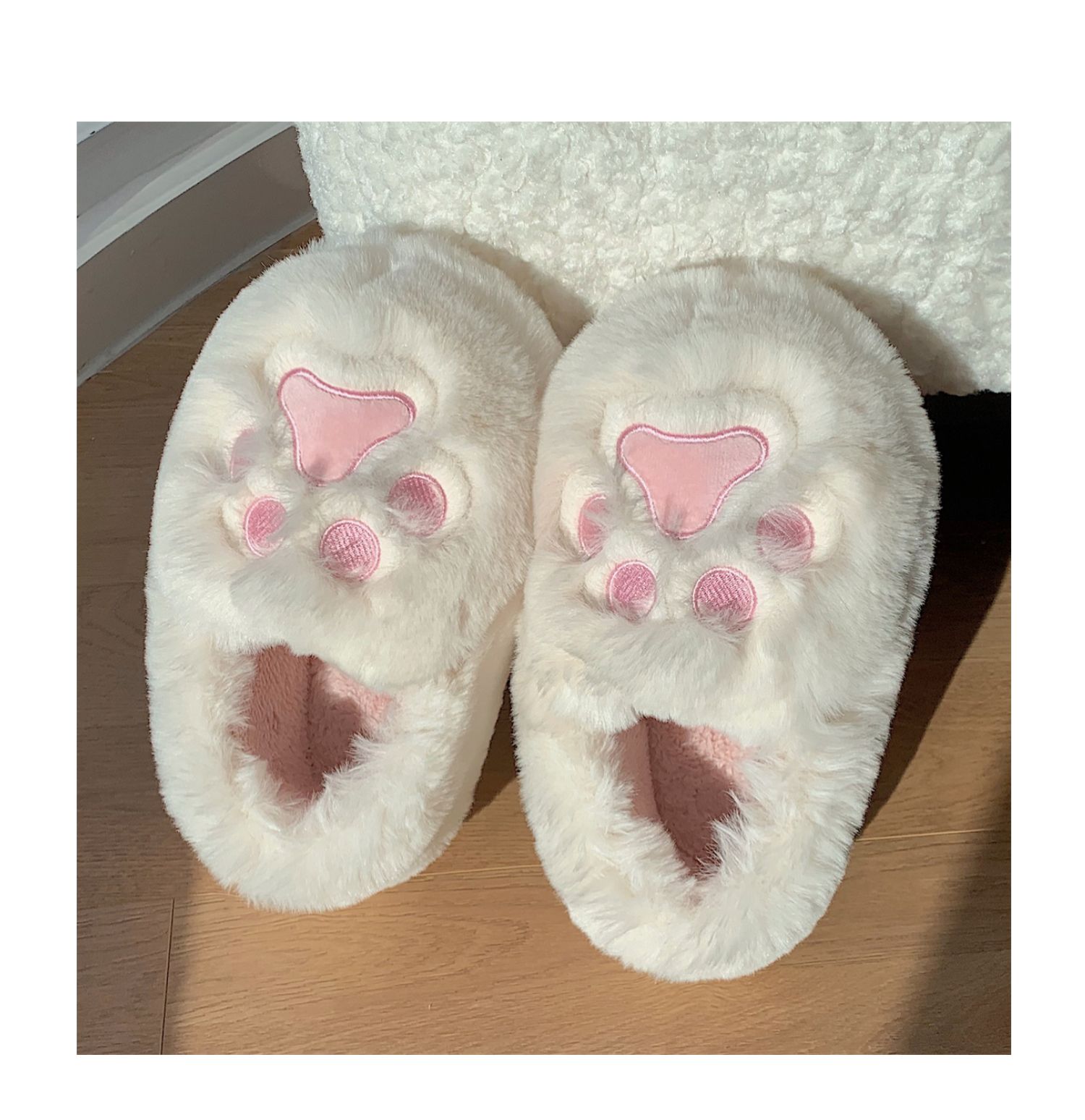 【半价秒杀】细细条 可爱猫爪棉拖鞋女冬居家防滑全包跟毛绒鞋
