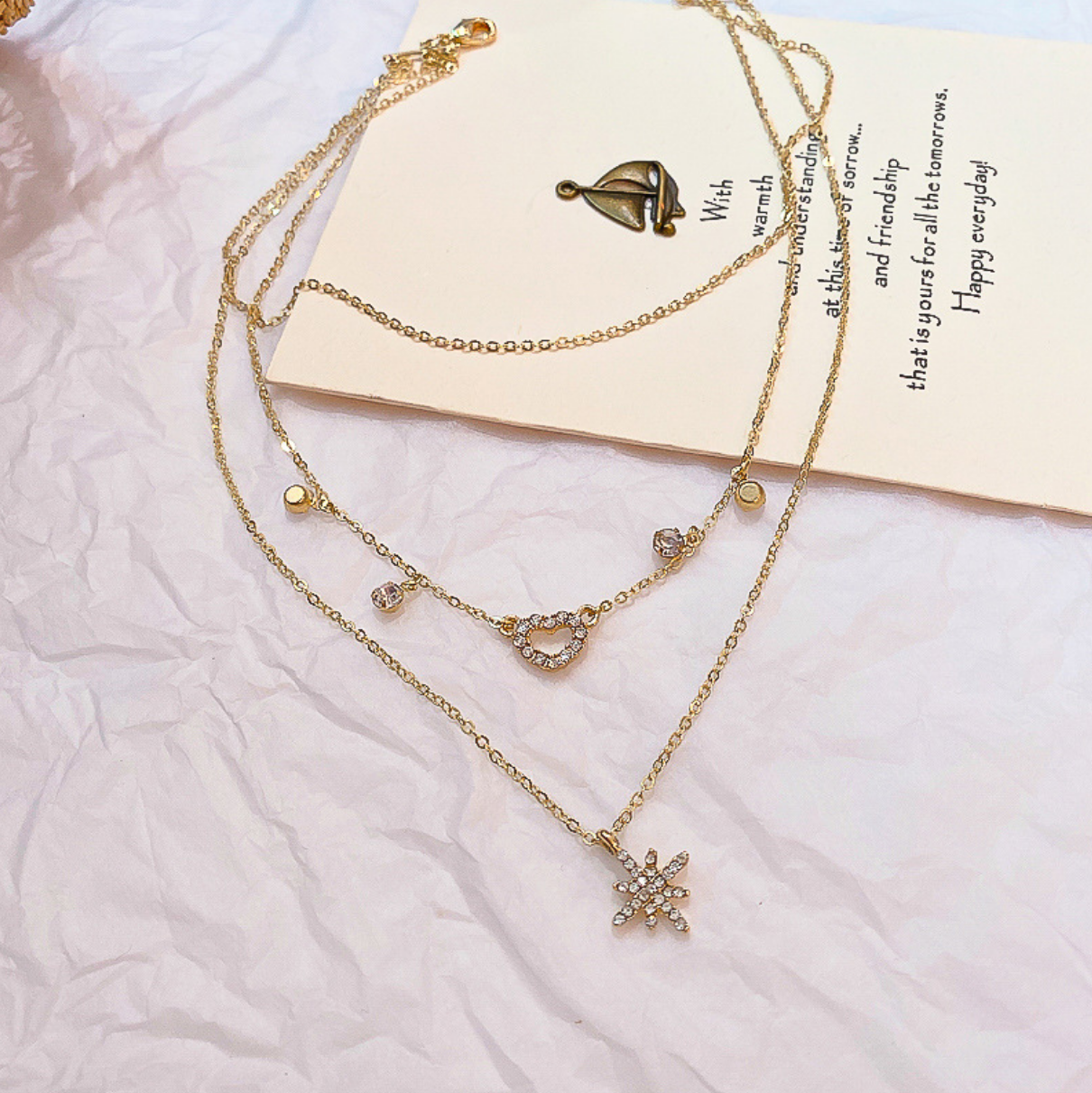 Soulcoo|锆石芒星爱心三层项链ins女时尚清新