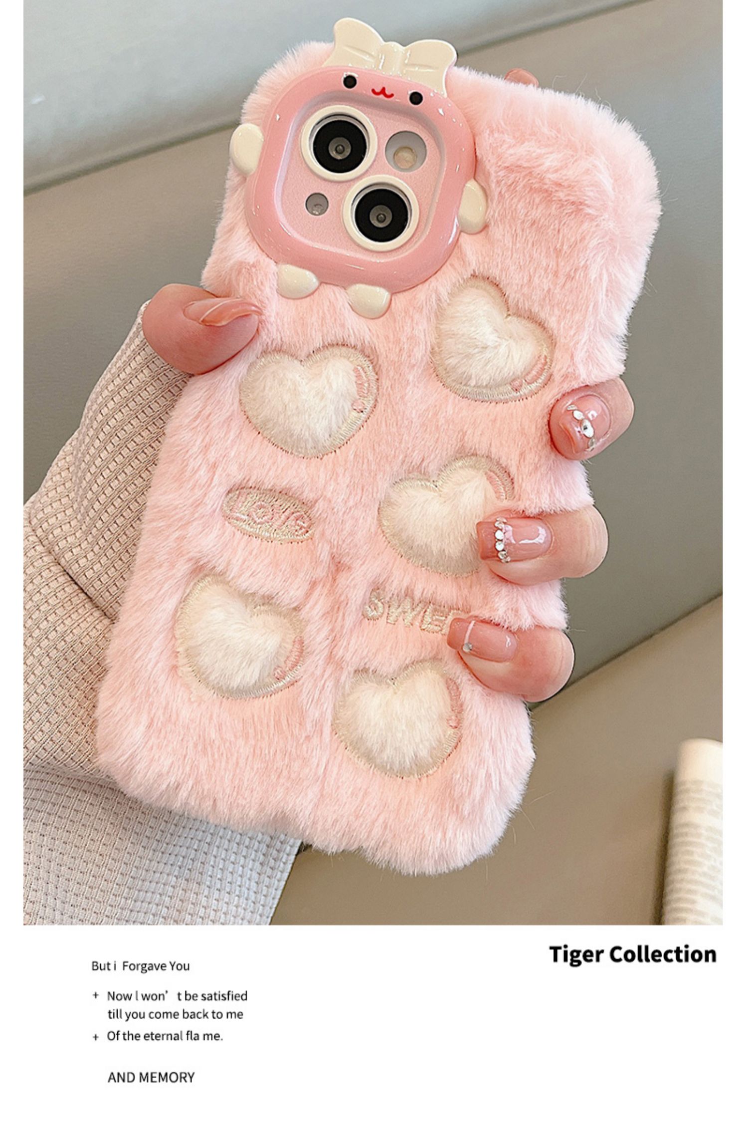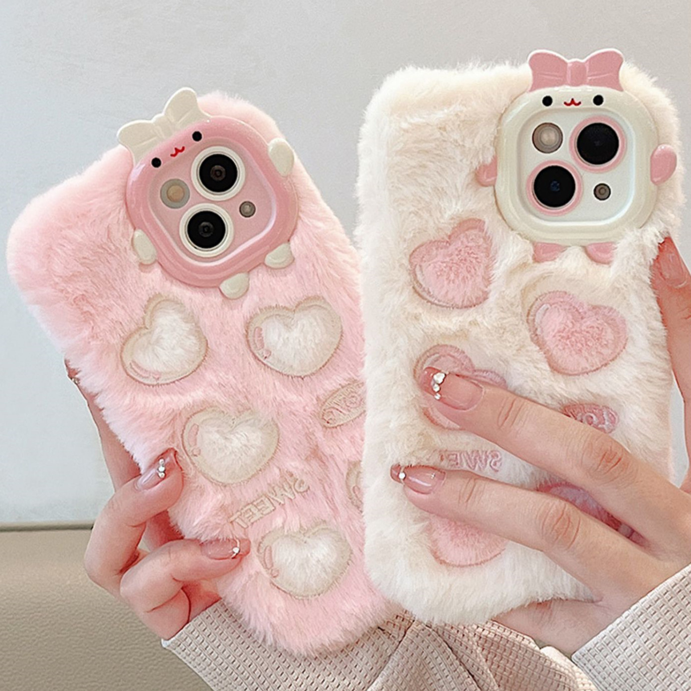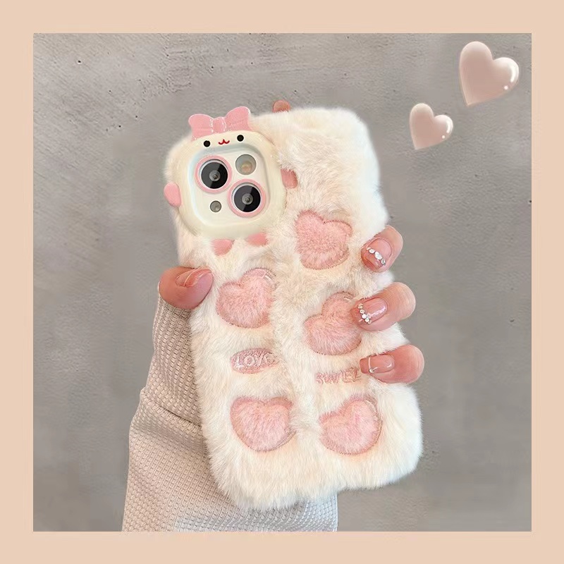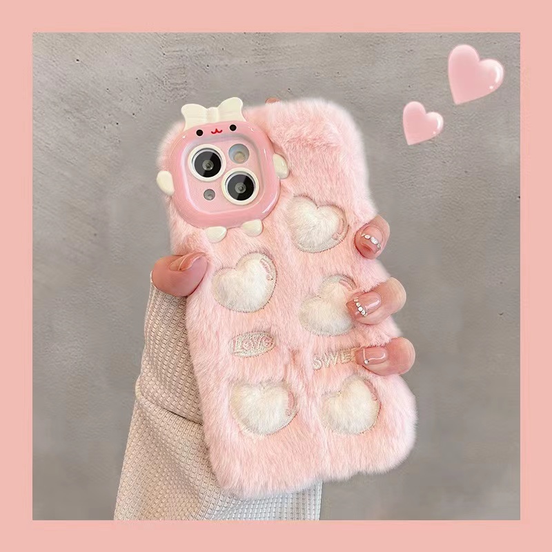 【半价秒杀】卡通刺绣爱心小怪兽 毛绒壳(iPhone14/13/12/11/Pro/Max)