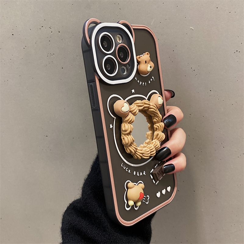 可爱小熊补妆镜子 硅胶壳(iPhone14/13/12/11/Pro/Max/Xr)