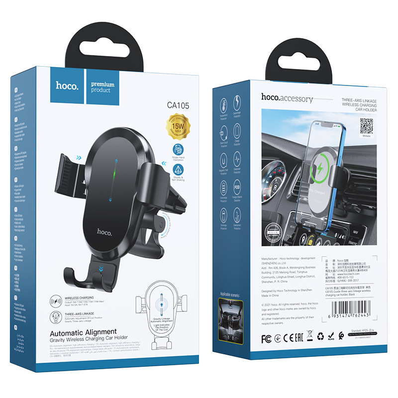 HOCO. 索迪三轴联动无线充车载支架 黑色 CA105