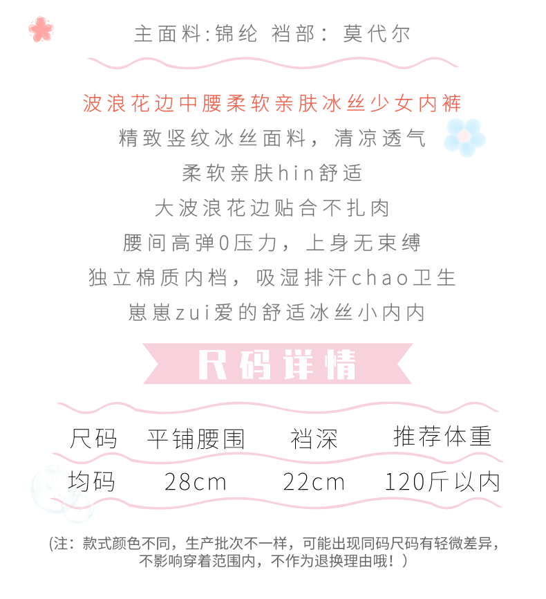 百货小铺【三条入】少女无痕桑蚕丝内裤 颜色随机
