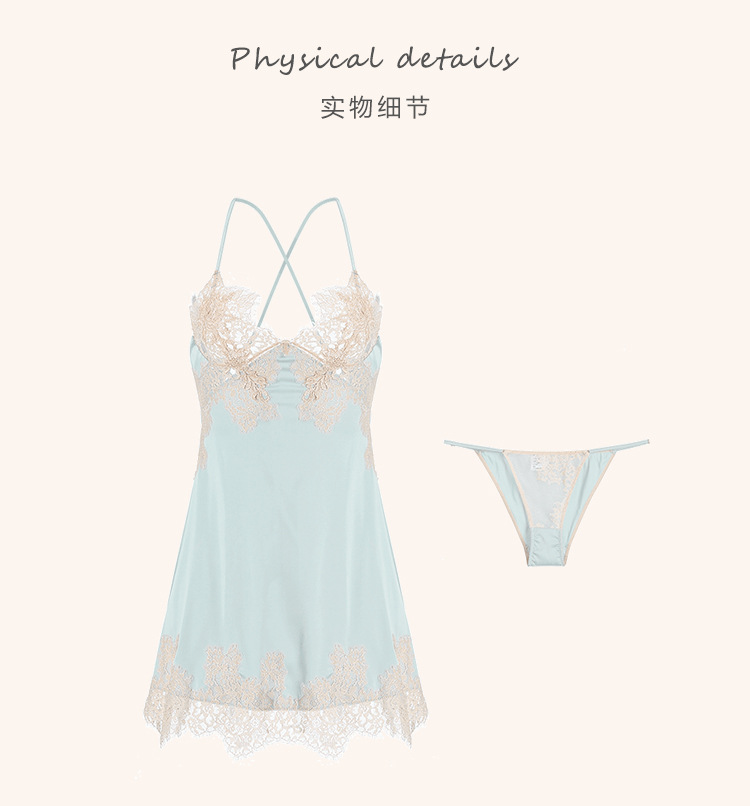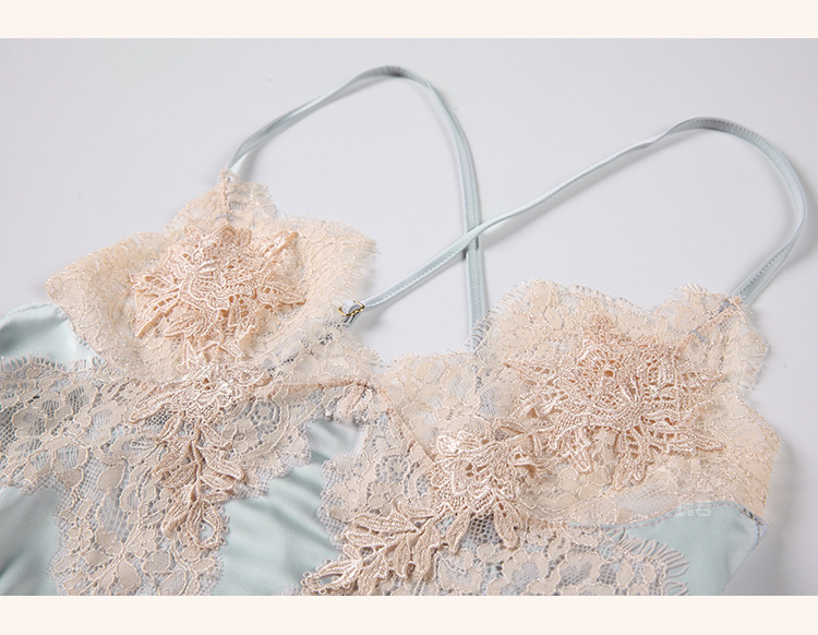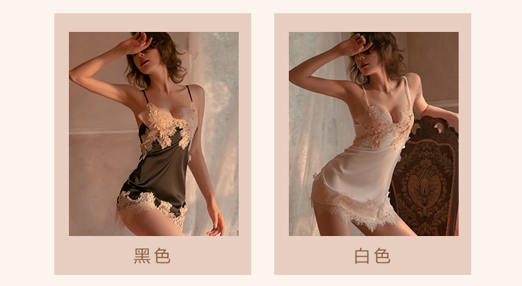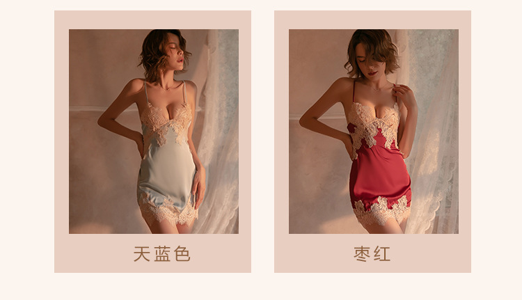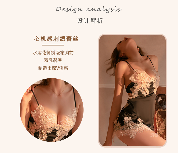 成人馆|莫奈花园 加胸垫甜美透视蕾丝纯欲缎面睡裙 M码 适合80-110斤