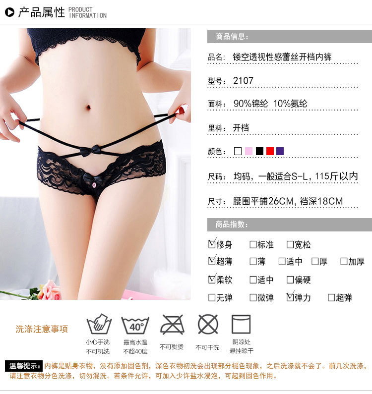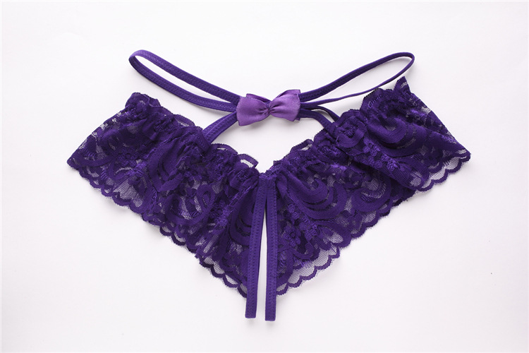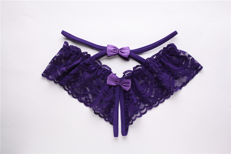 成人馆|环腰蝴蝶结绑带蕾丝镂空透视开档内裤-4种颜色