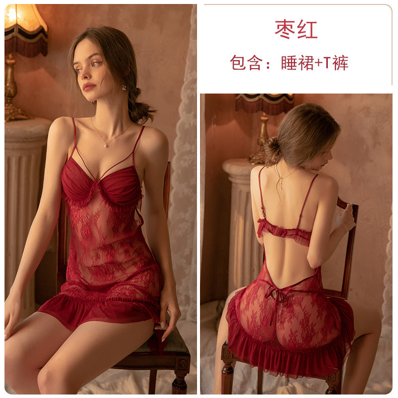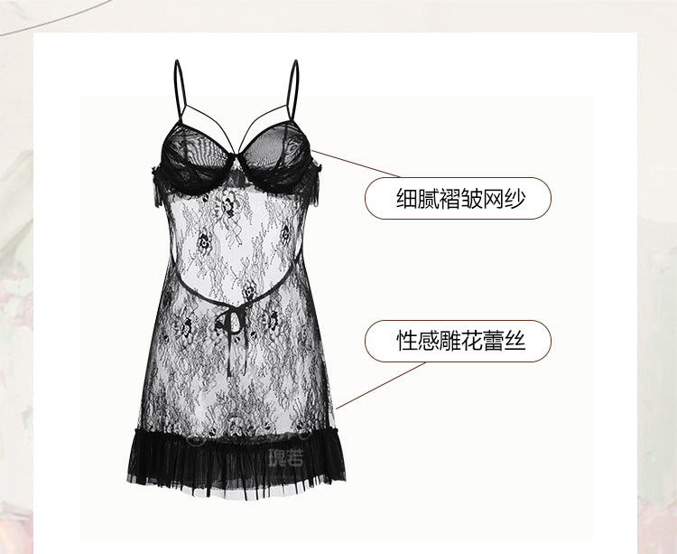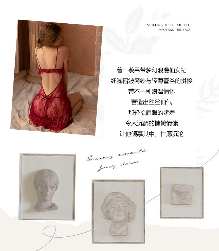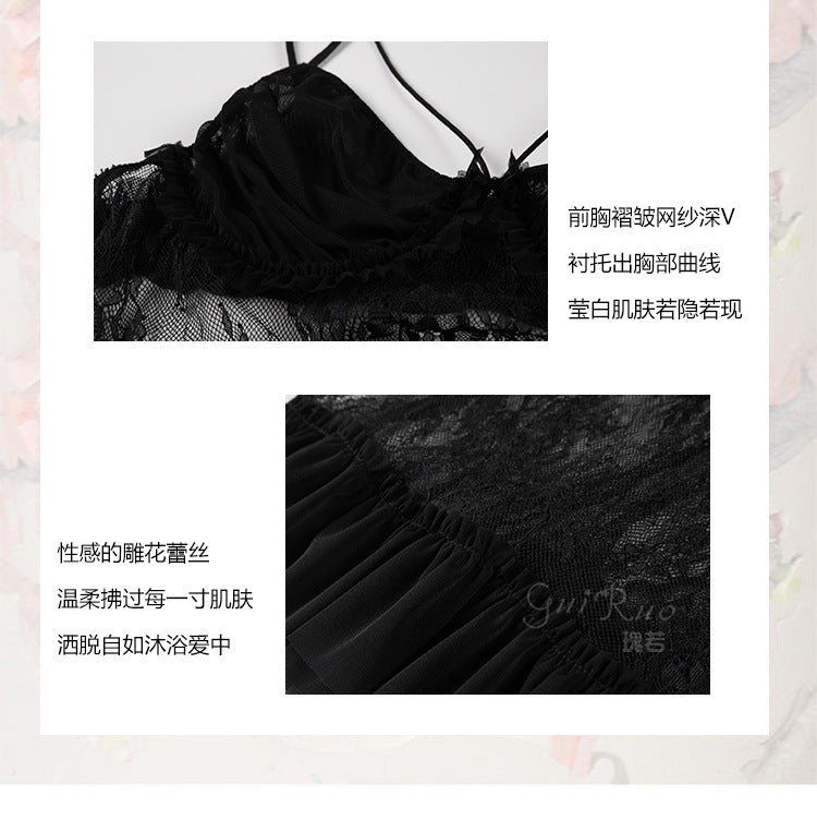 成人馆|网纱透视深V露背吊带睡裙