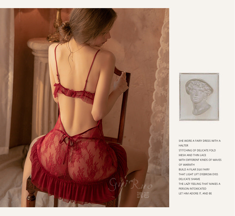 成人馆|绑带诱惑开叉露背吊带睡裙