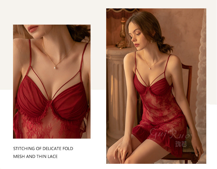 成人馆|梦中情人 撩欲私房法式蕾丝吊带睡裙睡袍