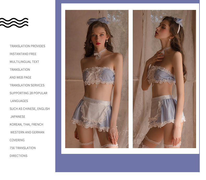 成人馆|陷入软糖 蕾丝花边露背后开叉格子女仆连衣裙COS套装