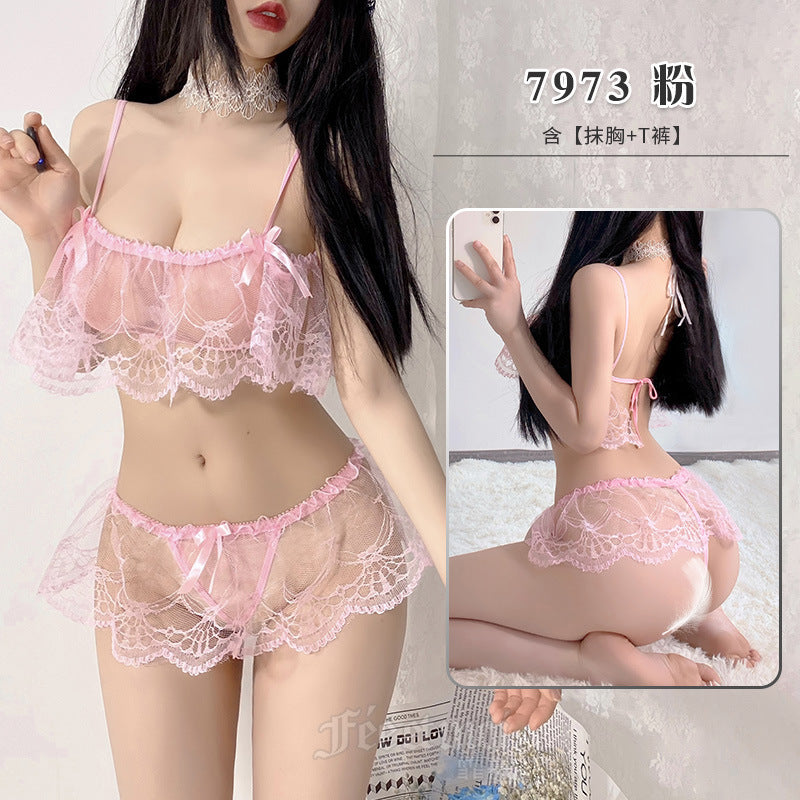 成人馆|娇柔妩媚透视蕾丝抹胸分体套装