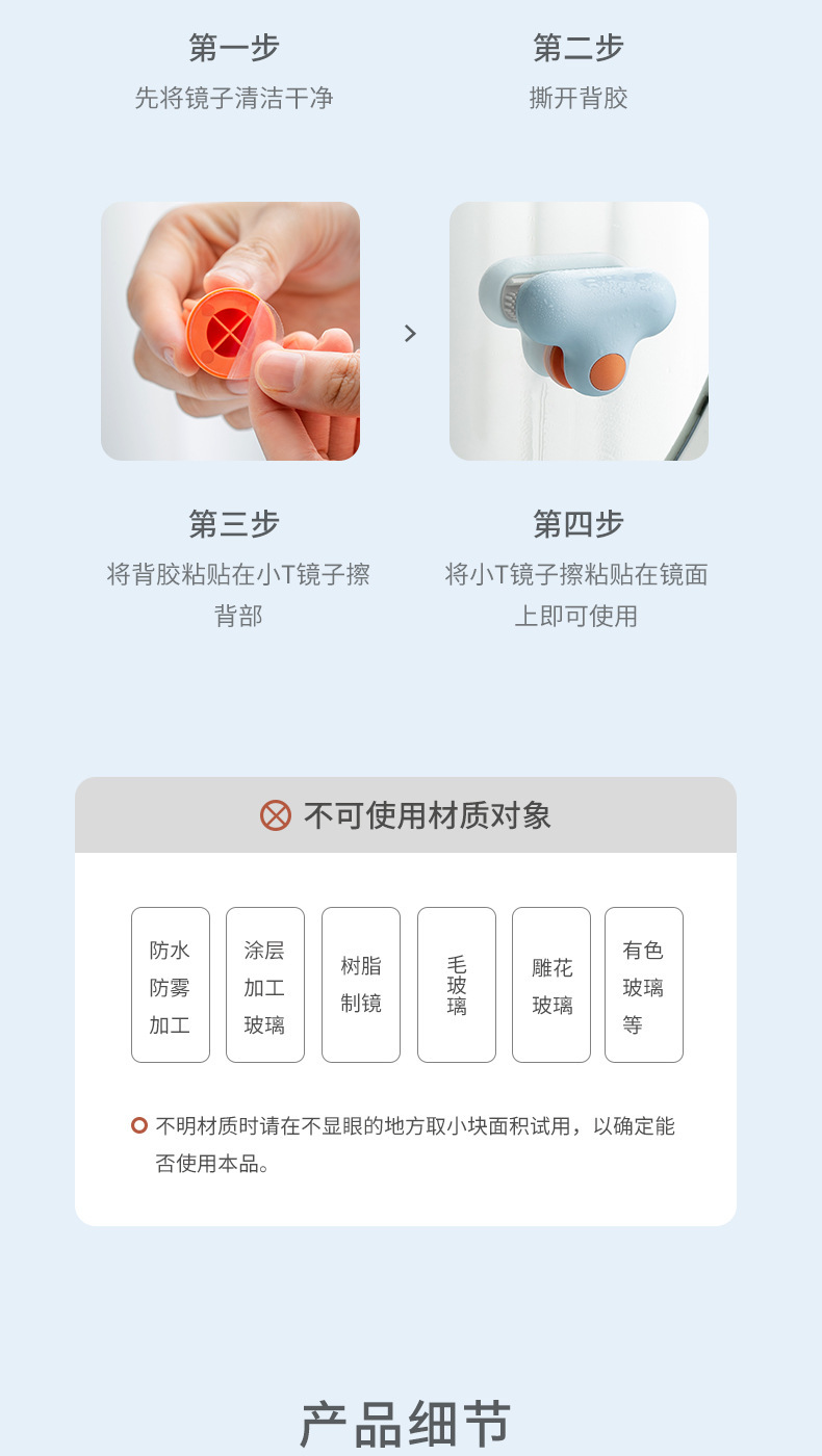玻璃清洁器家用窗户清除水垢擦镜子刷头 蓝色