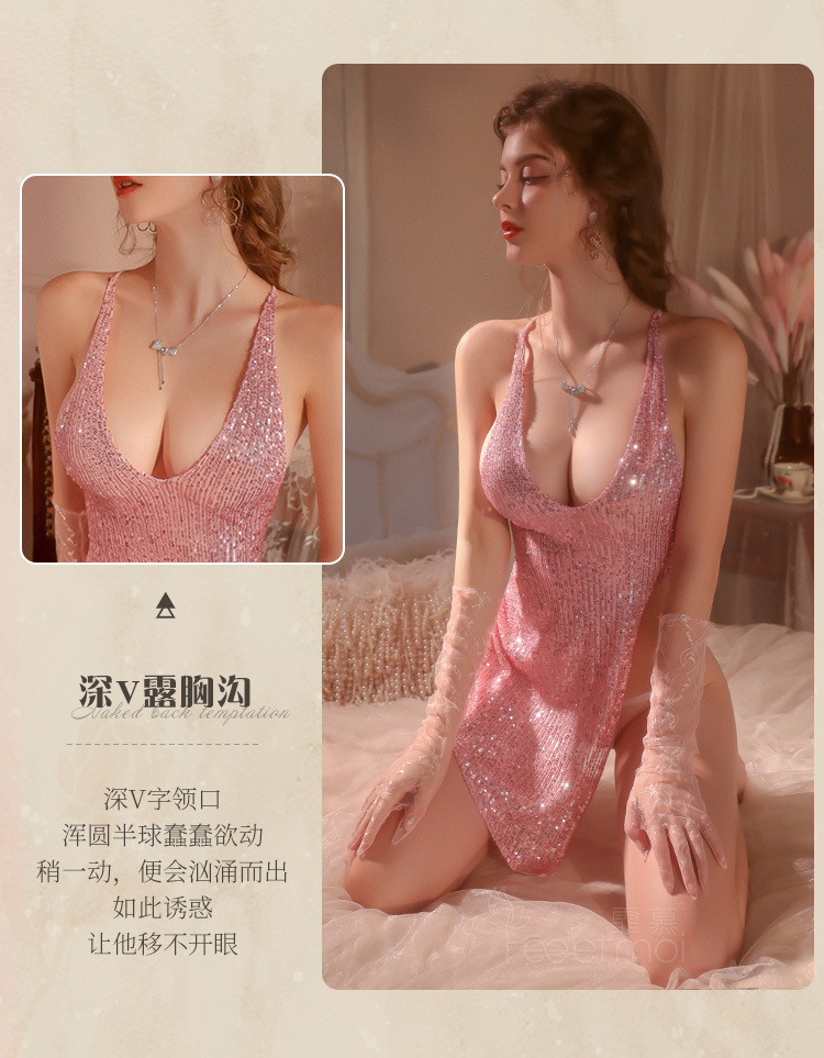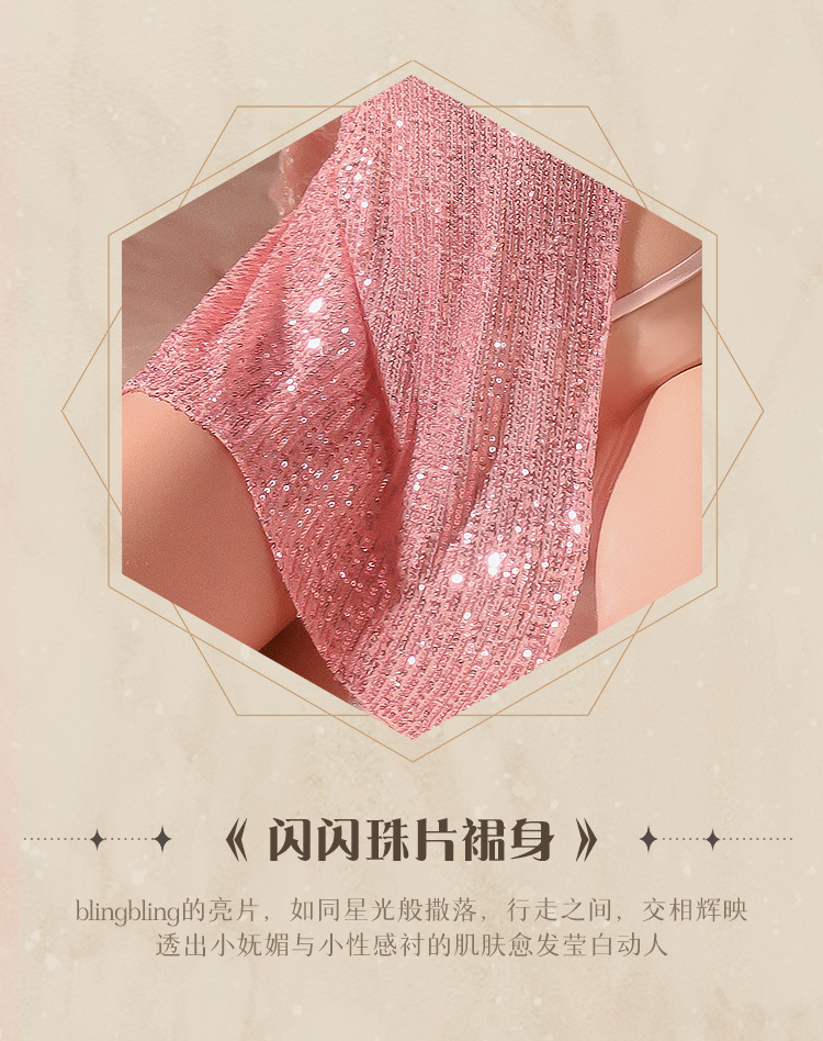 成人馆|细闪V领露背修身吊带裙