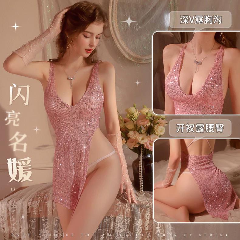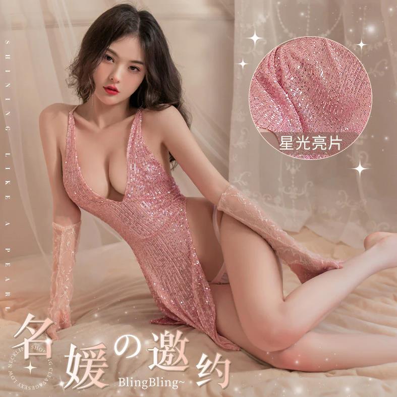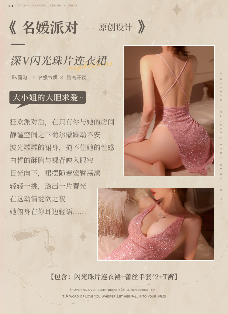 成人馆|闪亮珠片单侧高开叉连衣裙套装