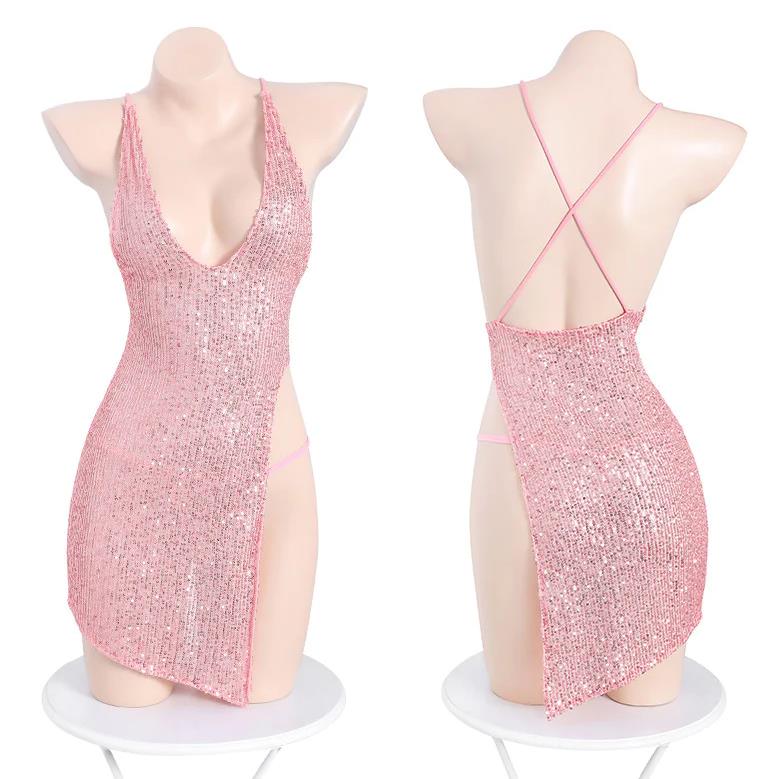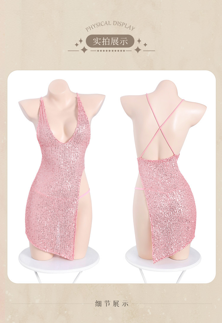 成人馆|镂空显瘦水钻挂脖包臀吊带睡裙 2色选