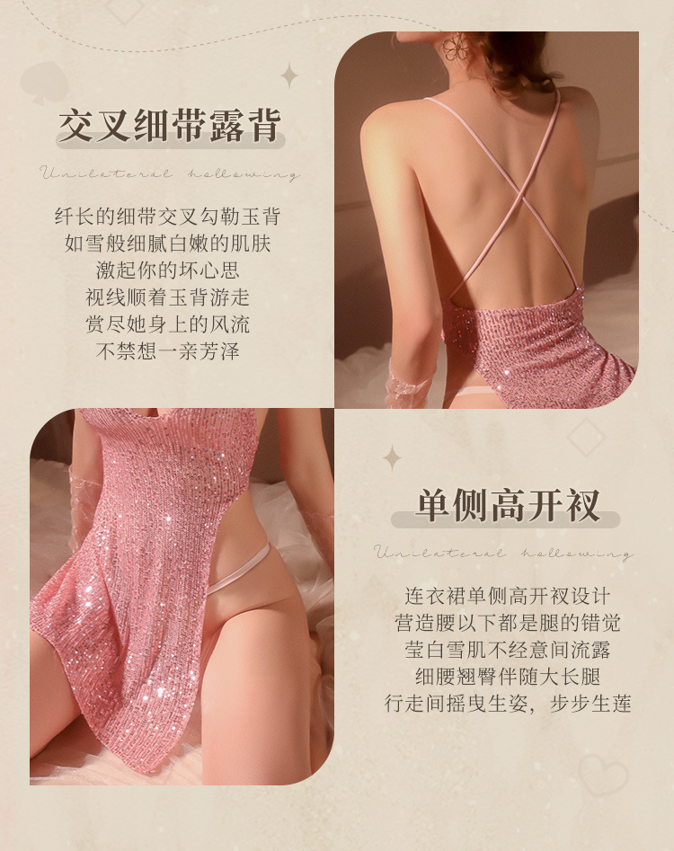 成人馆|纯欲人妻 性感高开叉显瘦镂空露臀吊带裙