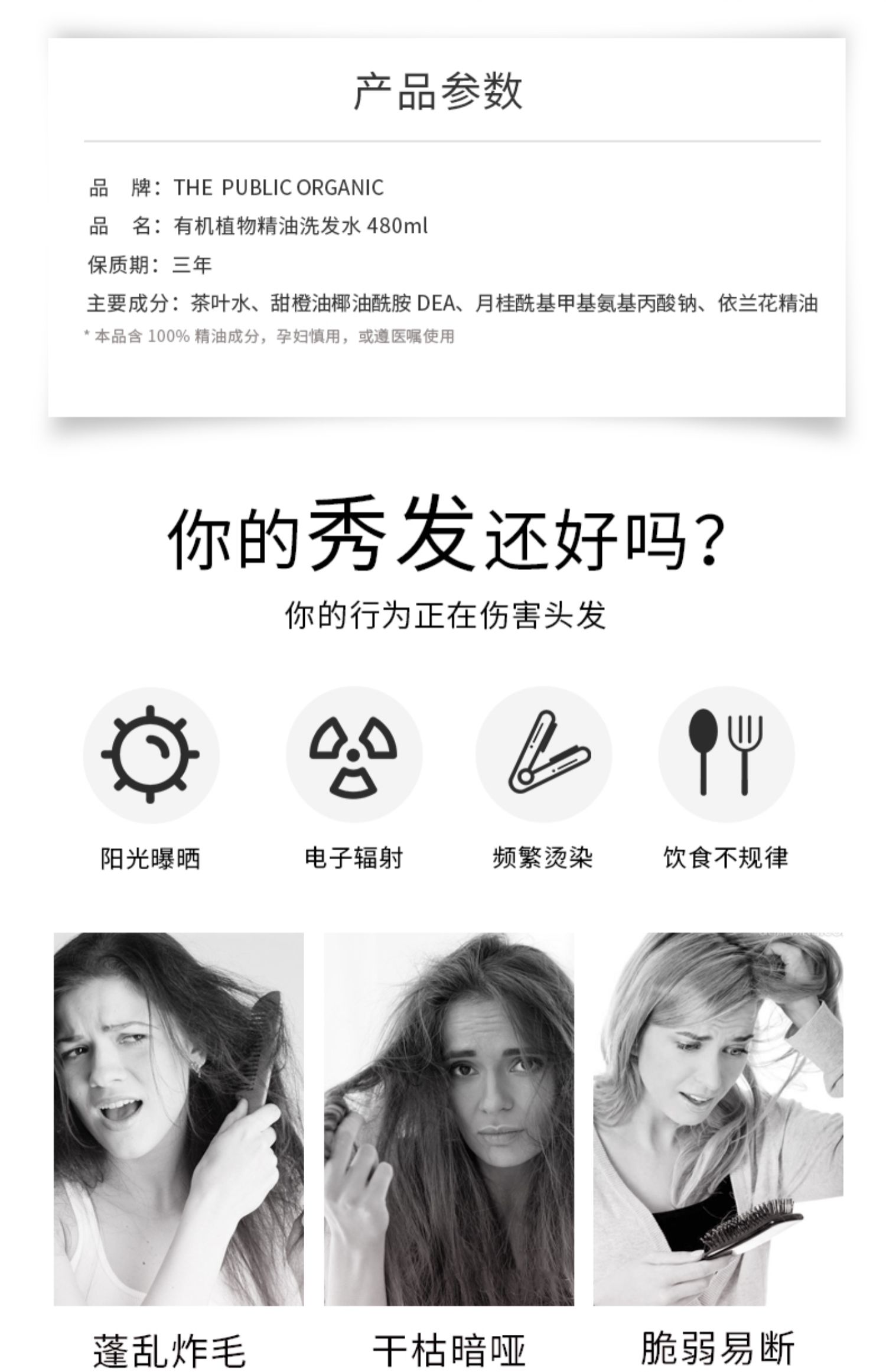日本 THE PUBLIC ORGANIC 氨基酸精油洗发水护发素 480ml 多款选(3个工作日内到货)