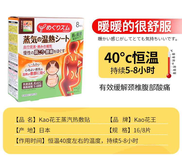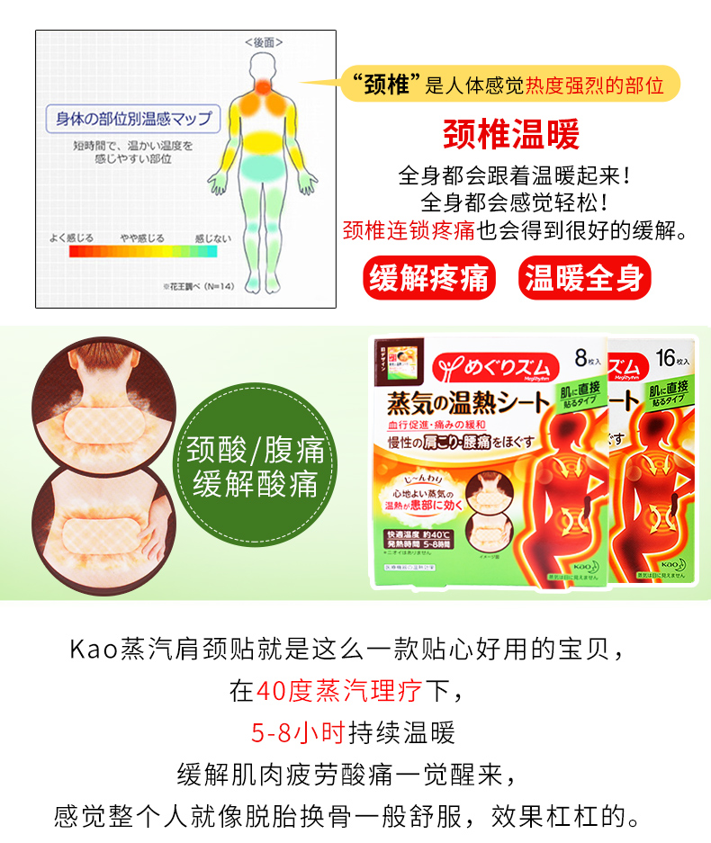 日本 KAO花王 缓解疲劳舒缓肩颈部压力蒸汽肩颈贴暖贴 8枚(3个工作日内到货)