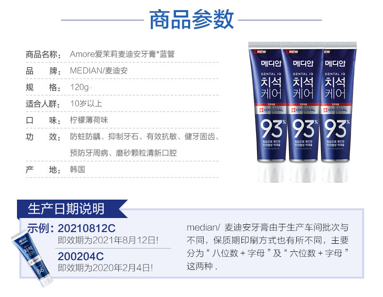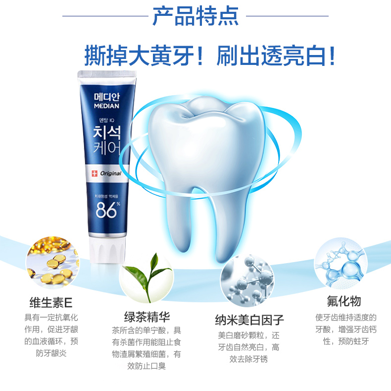 【限时秒杀】韩国 Median 93%清洁牙膏清新美白 120g