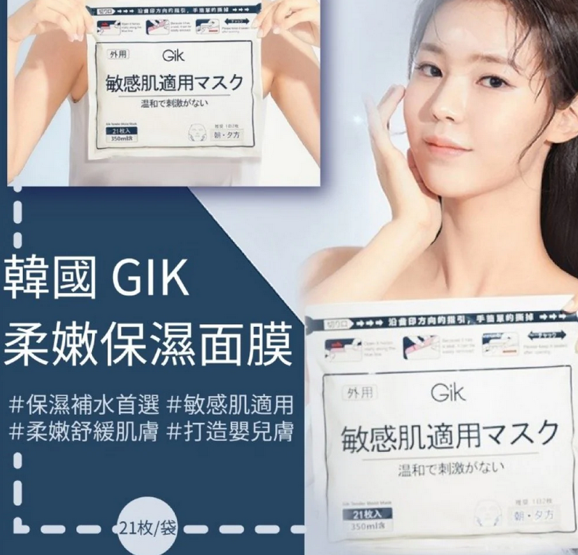 GIK 敏感肌用嫩肤保湿面膜 21pcs/350ml(3个工作日内到货)