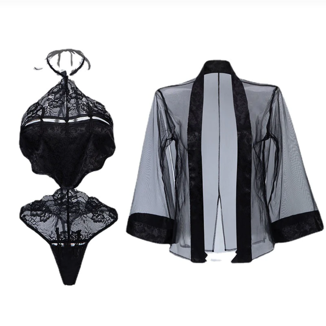 成人馆|倾城颜色古风肚兜系带挂脖蕾丝透视连体制服套装