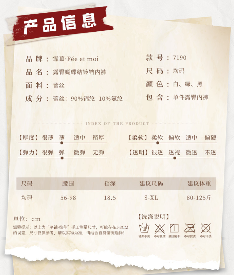 成人馆|露臀蝴蝶结铃铛内裤 多色选