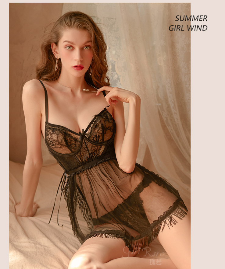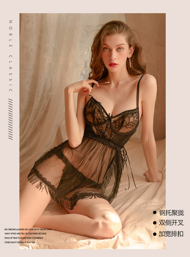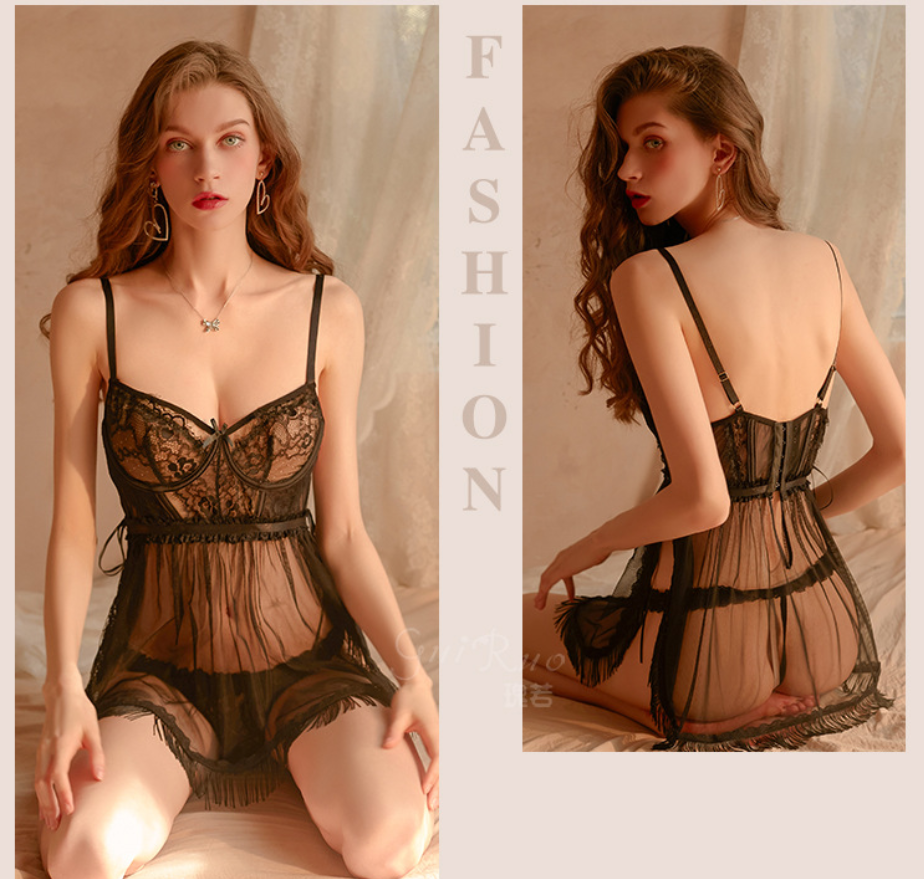 成人馆|魔法的纱梦低胸流苏吊带透视睡衣 2色选