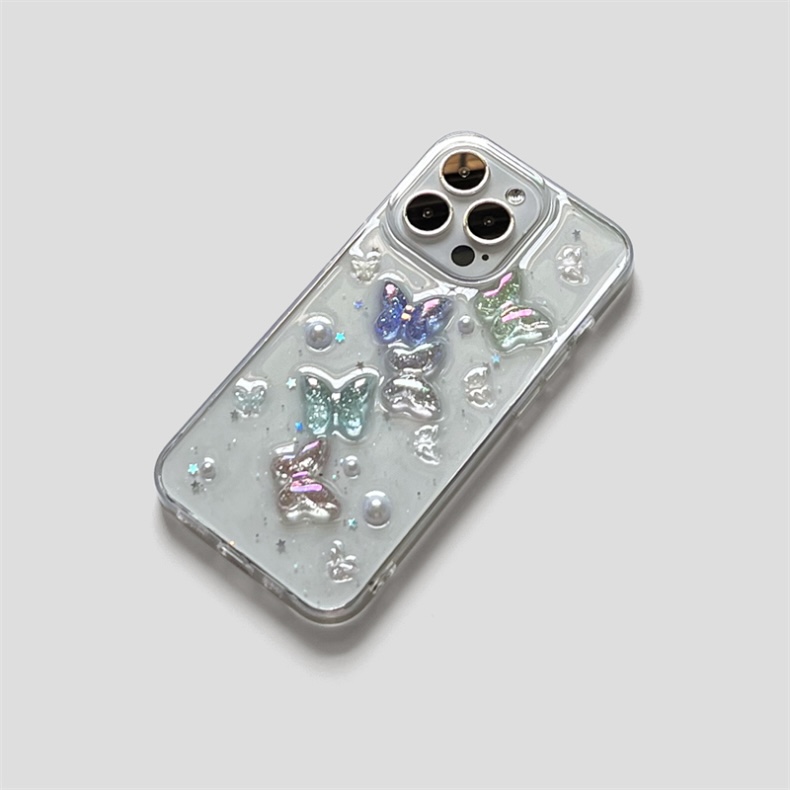 立体彩色小蝴蝶 硅胶壳(iPhone15/14/13/12/11/Pro/Max)