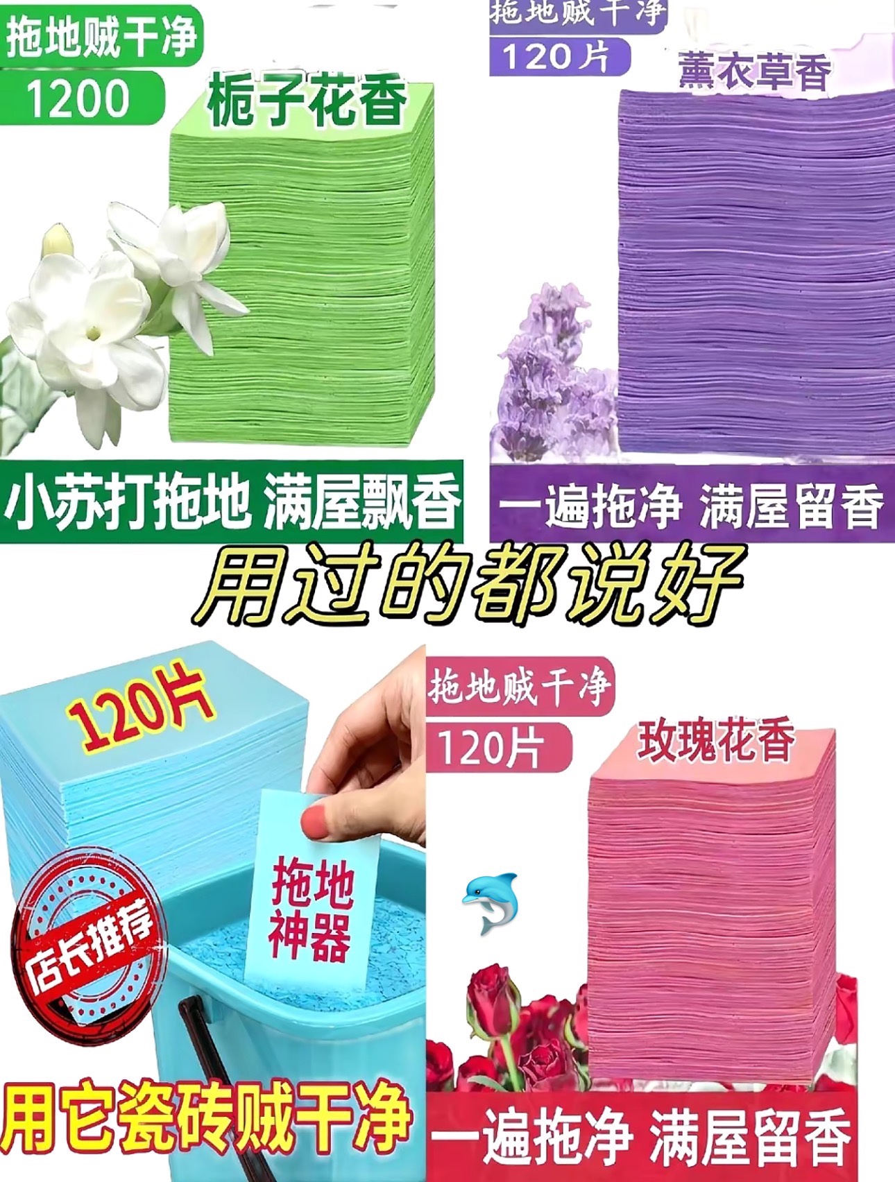 百货小铺【2包240片】瓷砖地板清洁片 7x11cm 120片/袋x2 味道随机