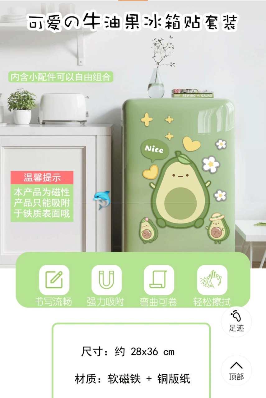 百货小铺|可爱の牛油果冰箱留言贴 大号留言板1个+小号冰箱贴2个+🉑擦笔1把