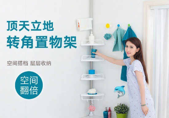 百货小铺|浴室转角架/浴室置物架 可伸缩最长3.2M高度(只限极速达区域)
