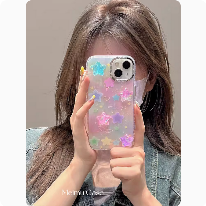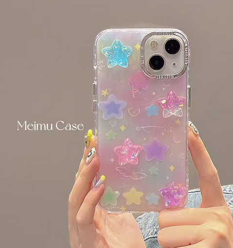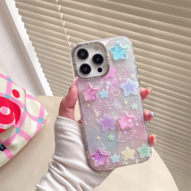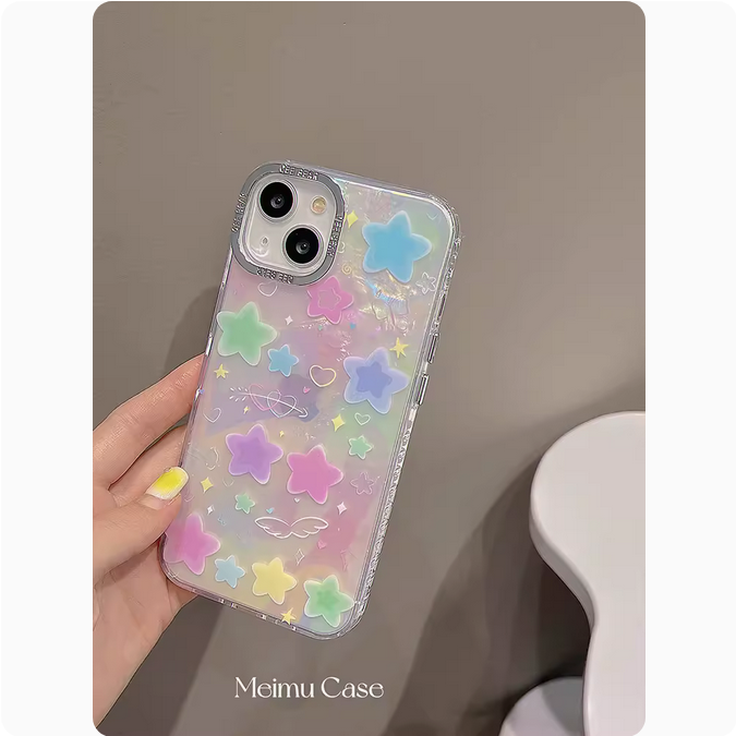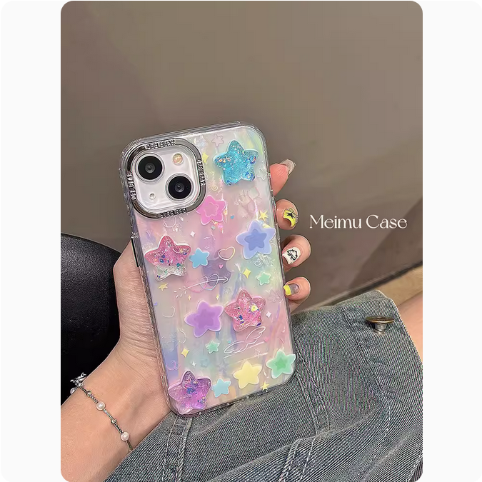 立体七彩星星幻彩贝壳纹 硅胶壳(iPhone15/14/13/12/11/Pro/Max)