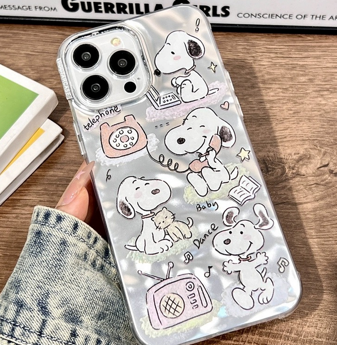 电镀波纹史努比小猫电话 硅胶壳(iPhone15/14/13/12/11/Pro/Max)
