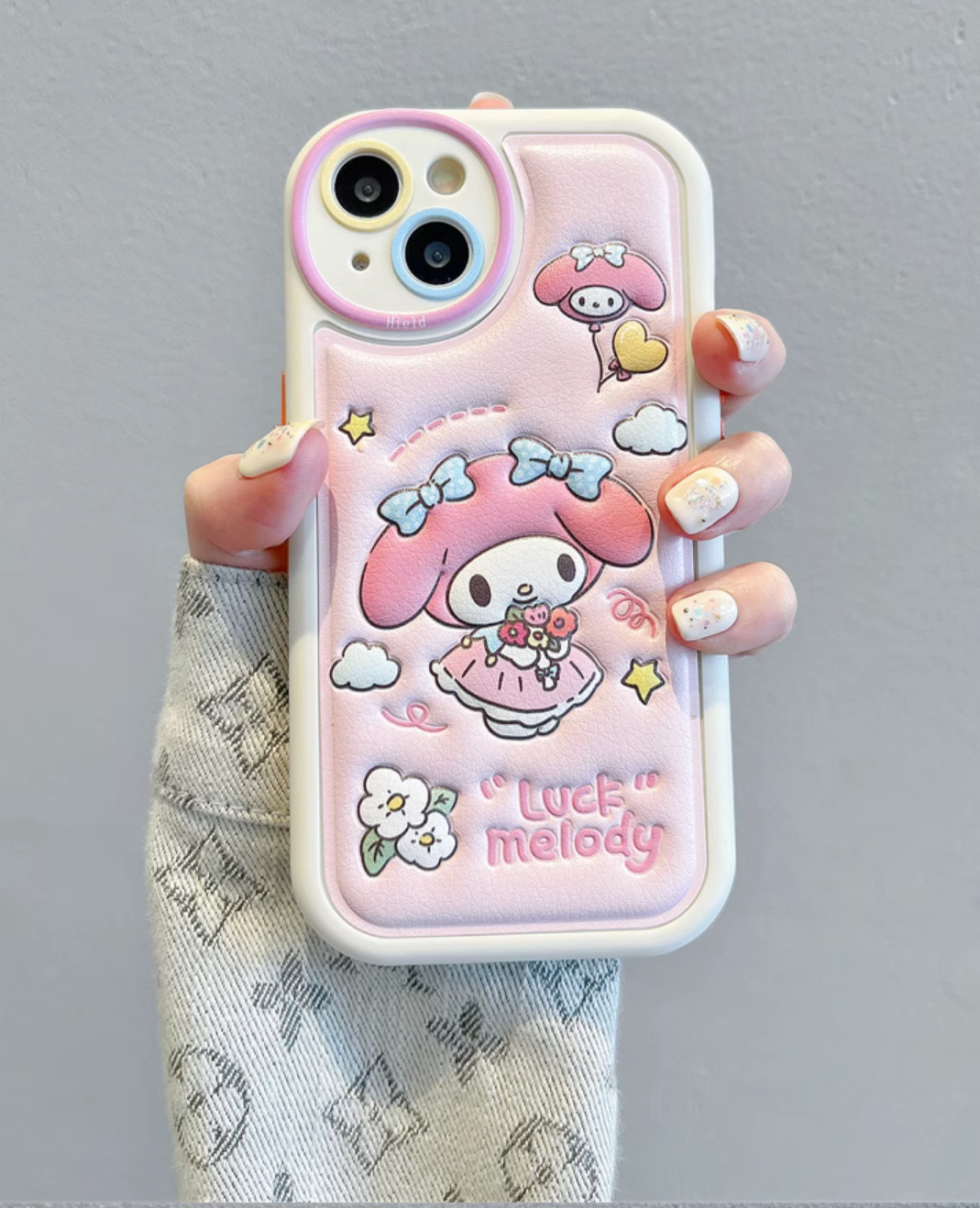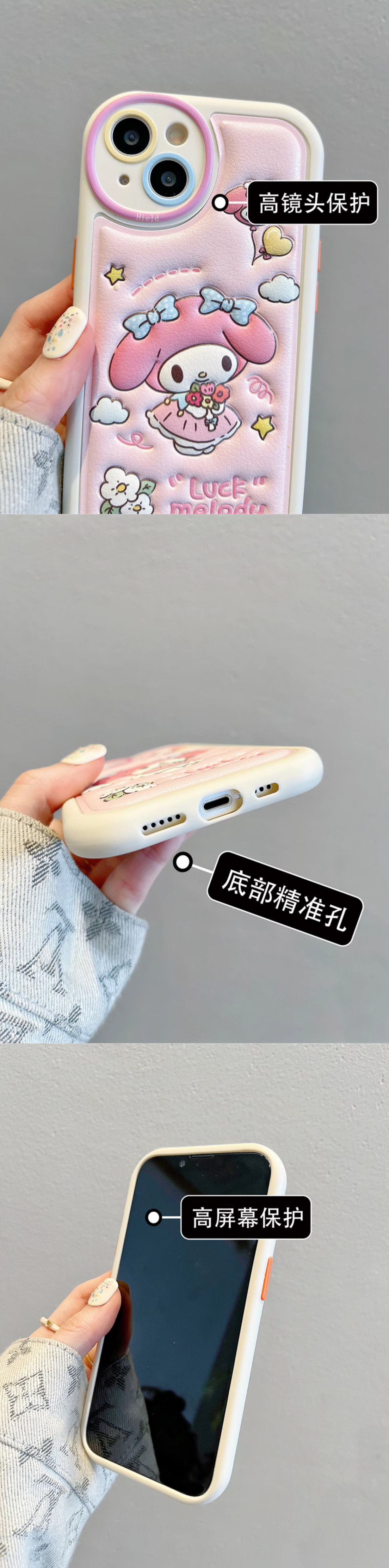 立体皮纹 美乐蒂 硅胶壳(iPhone15/14/13/12/11/Pro/Max)