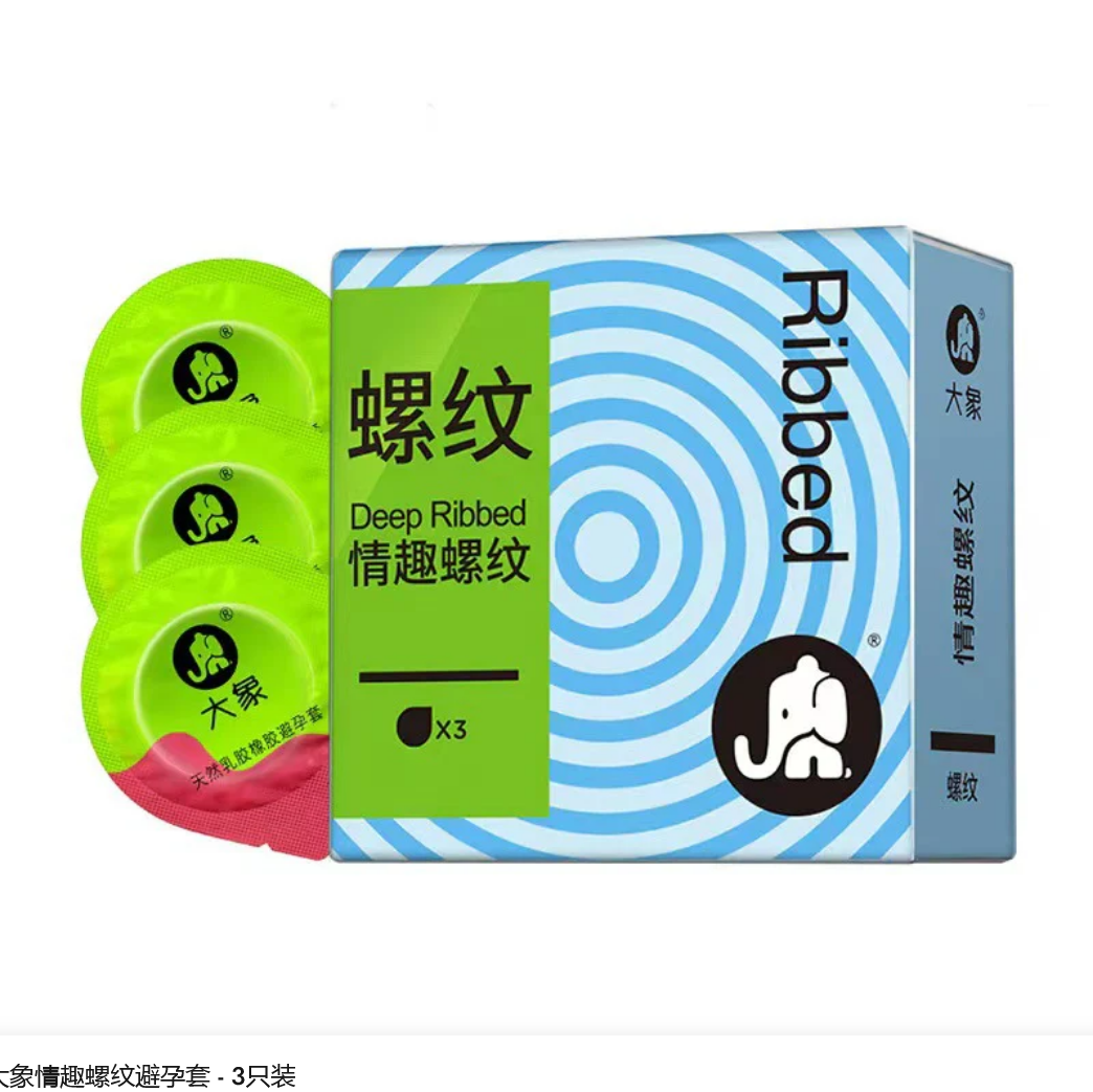 成人馆|大象情趣螺纹避孕套 - 3只装
