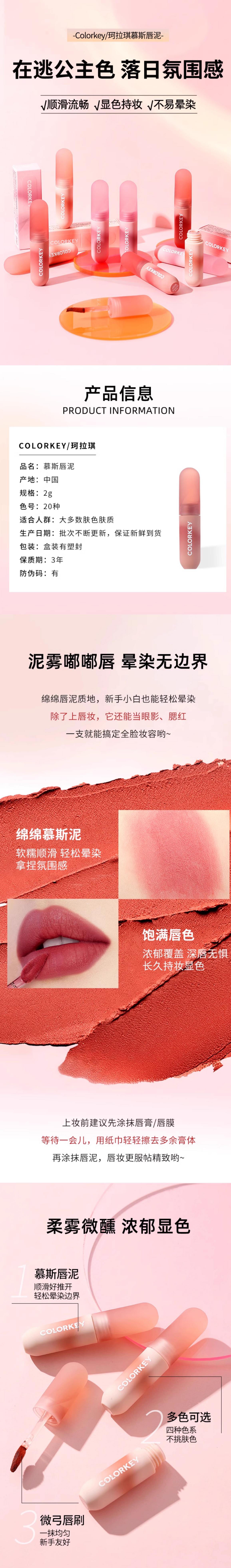 优品|colorkey小彩弹唇泥彩蛋雾面丝绒慕斯唇釉 多款选