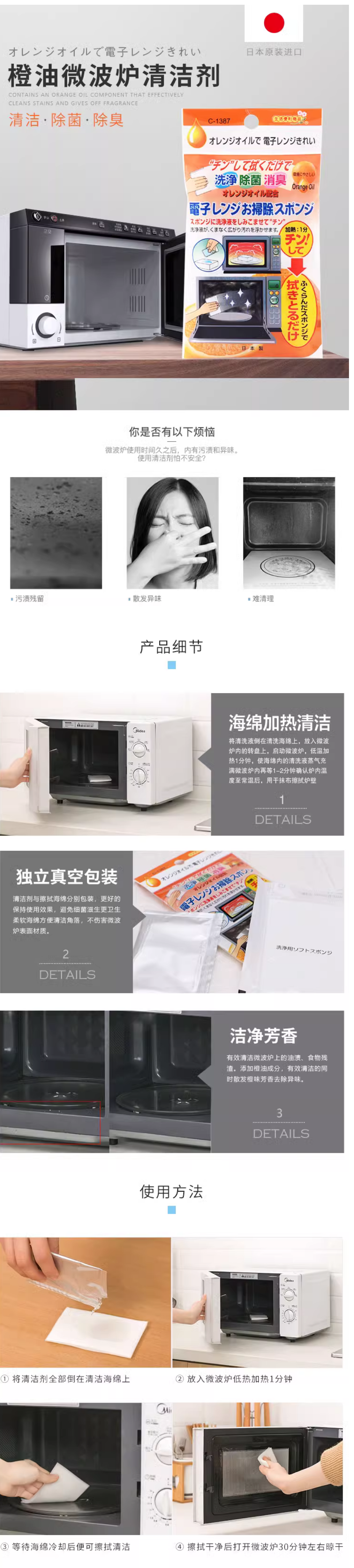 日本百貨|微波炉清洁剂除异味去油污清洁海绵