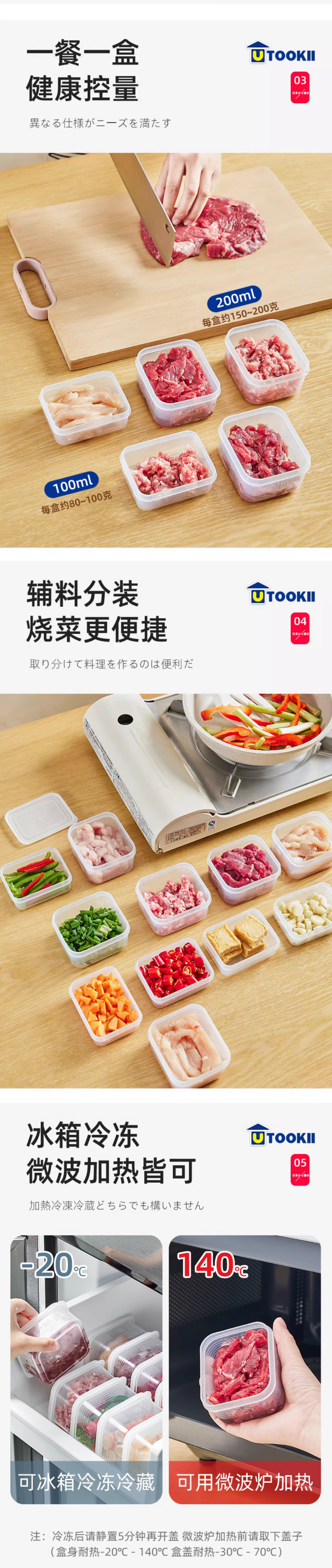 日本百貨【3个/pack】冰箱冻肉分格盒子冷冻食品级收纳